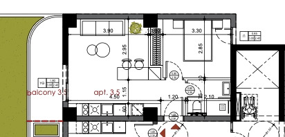 Die Wohnung besteht aus einem Schlafzimmer, einem offenen Wohnbereich mit Küche, einem Badezimmer, einem komfortablen Balkon sowie einem privaten Abstellraum. Ähnliche Wohnungen in vergleichbarer Größe und Preisklasse sind auf allen Etagen vom 1. bis zum 8. Stock verfügbar.