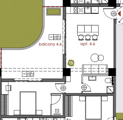 Die Wohnung besteht aus einem Schlafzimmer, einem offenen Wohnbereich mit Küche, einem Badezimmer, einem komfortablen Balkon sowie einem privaten Abstellraum. Ähnliche Wohnungen in vergleichbarer Größe und Preisklasse sind auf allen Etagen vom 1. bis zum 8. Stock verfügbar.