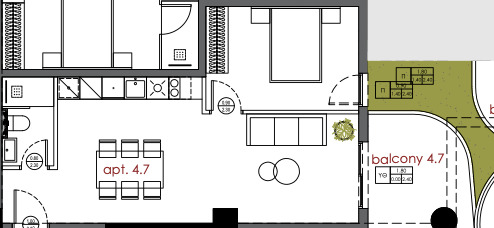 Die Wohnung besteht aus einem Schlafzimmer, einem offenen Wohnbereich mit Küche, einem Badezimmer, einem komfortablen Balkon sowie einem privaten Abstellraum. Ähnliche Wohnungen in vergleichbarer Größe und Preisklasse sind auf allen Etagen vom 1. bis zum 8. Stock verfügbar.