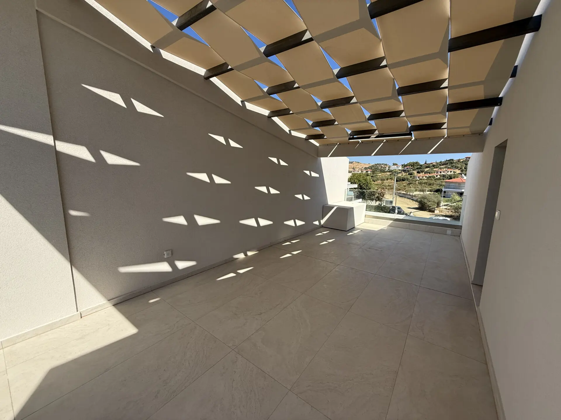 Die Wohnung hat eine Gesamtfläche von 91,7 m² und erstreckt sich über das erste Obergeschoss und das Dachgeschoss. Der Grundriss umfasst ein geräumiges Wohnzimmer mit Küchenbereich, drei gemütliche Schlafzimmer und zwei Badezimmer. Einer der Hauptvorteile ist ein großer Balkon von 60,34 m², der sich perfekt zum Entspannen und zur Bewirtung von Gästen eignet.