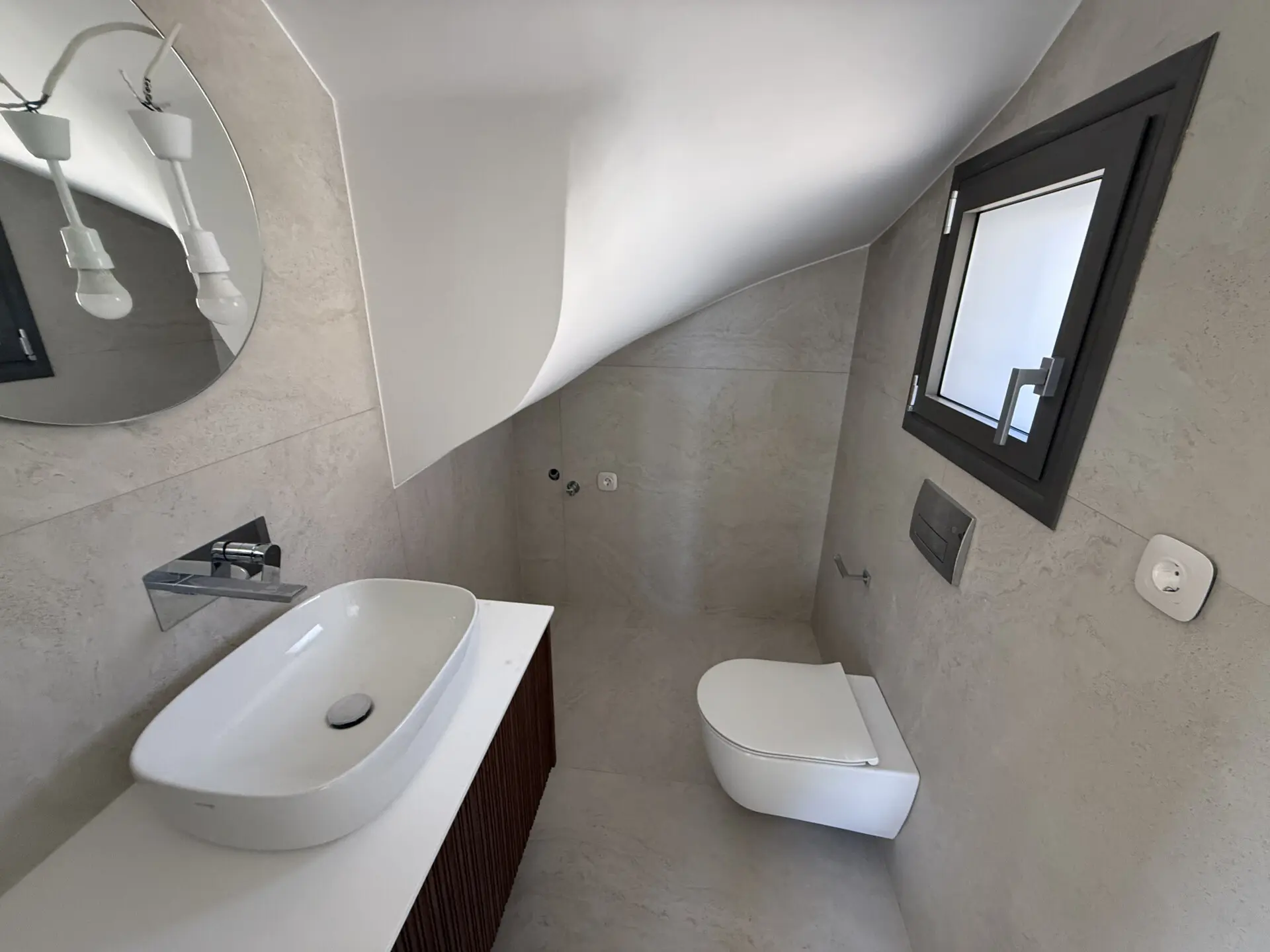 Das Haus ist mit modernsten Funktionen ausgestattet, darunter ein Smart-Home-System zur Fernsteuerung von Funktionen und Klimaanlagen in jedem Zimmer. Es gibt eine Vorinstallation für Fußbodenheizung (Wärmepumpe nicht im Lieferumfang enthalten) sowie einen Solarwarmwasserbereiter für Energieautonomie.