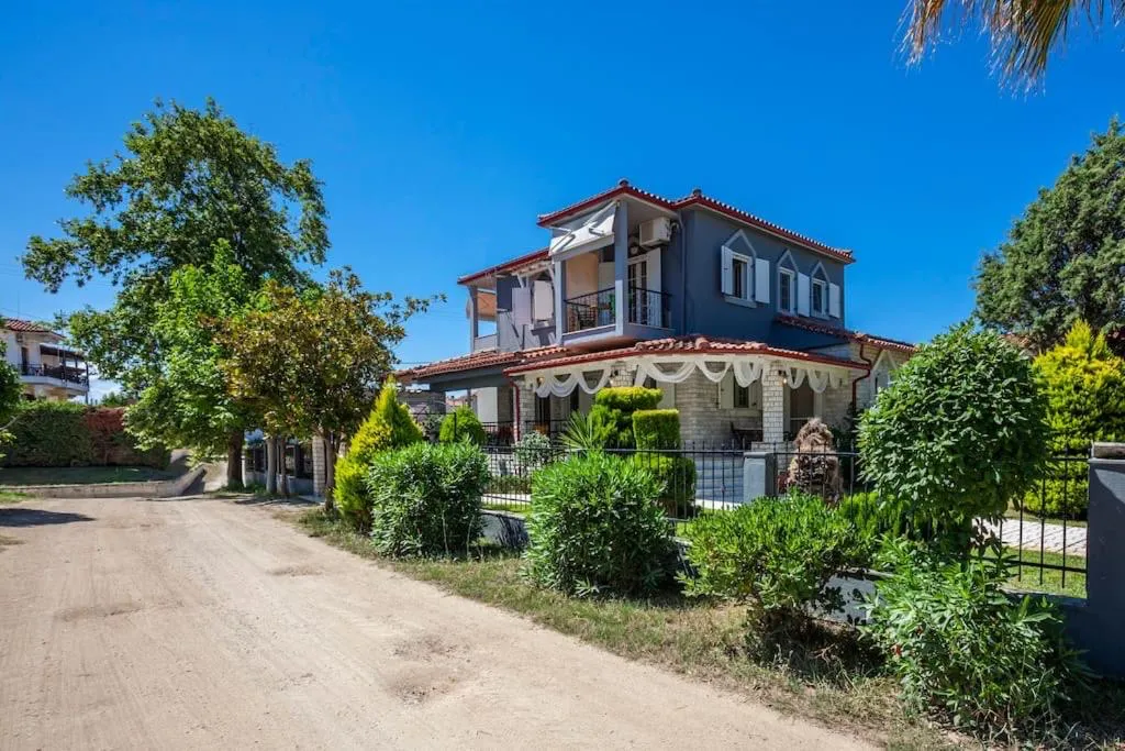 Zum Verkauf steht eine Villa mit 250 m² Wohnfläche in Nikiti auf der Halbinsel Sithonia, Region Chalkidiki. Das Haus wurde 1992 erbaut, besteht aus zwei Etagen und befindet sich auf einem 740 m² großen Grundstück. Im Erdgeschoss befinden sich zwei Schlafzimmer, ein Wohnzimmer mit Küche und ein Duschbad. Im Obergeschoss gibt es drei weitere Schlafzimmer und ein weiteres Duschbad. Aus den Fenstern öffnet sich ein Blick auf die Stadt. Die Villa ist mit Solarpaneelen zur Wassererwärmung, einem Kamin, Klimaanlage, Markisen und einem Grillbereich ausgestattet. Die Immobilie wird möbliert verkauft. Auf dem Grundstück gibt es einen Parkplatz und einen gepflegten Garten. Die Entfernung zum Meer beträgt 400 Meter, zum Flughafen 88 Kilometer. Eine ausgezeichnete Wahl für den ständigen Wohnsitz, den Urlaub oder als Mietinvestition.