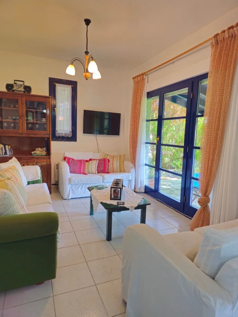 Das Haus wird möbliert verkauft und verfügt über einen Kamin und Klimaanlage, was das ganze Jahr über Komfort gewährleistet. Er verfügt außerdem über einen Parkplatz und ein Heizsystem, was ihn zu einer ausgezeichneten Wahl für den Immobilienkauf in Halkidiki macht.