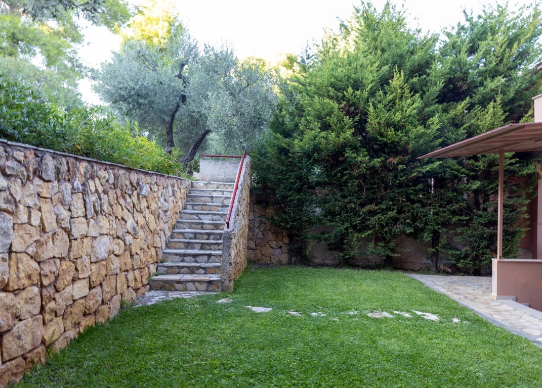 Villa zum Verkauf, 142 m², in Sani, Halkidiki. Die Villa ist auf drei Ebenen errichtet. Das Halbkeller umfasst ein Schlafzimmer. Das Erdgeschoss besteht aus einem Wohnzimmer mit Küche und einem Badezimmer mit Dusche. Das Erdgeschoss verfügt über zwei Schlafzimmer und ein Badezimmer mit Dusche. Das Grundstück ist möbliert verkauft und verfügt über einen Parkplatz, einen Garten mit Rasen und einen Abstellraum. Es ist eine ausgezeichnete Wahl für ein Ferienhaus im wunderschönen Viertel Sani, Halkidiki.