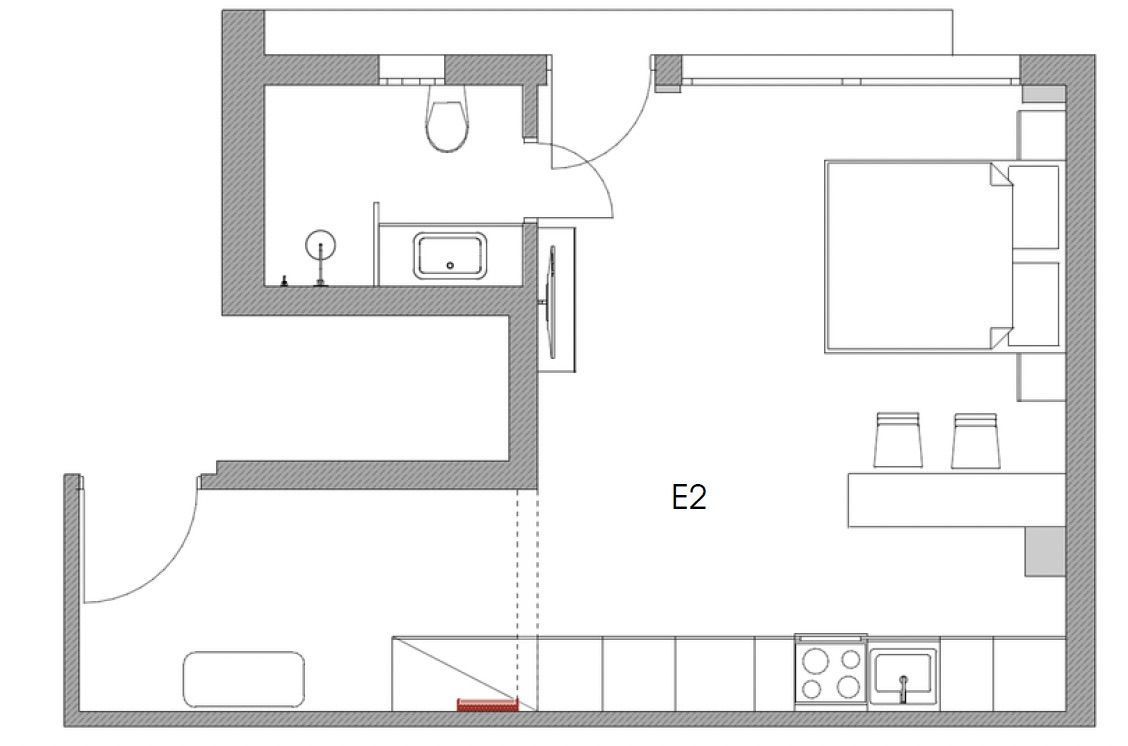 Η λειτουργική ενιαία διαρρύθμιση διαθέτει έναν φωτεινό, ενιαίο χώρο διαβίωσης που συνδυάζει άψογα έναν άνετο χώρο ύπνου, ένα σαλόνι και μια μοντέρνα κουζίνα, που συμπληρώνεται από ένα σύγχρονο μπάνιο και μπαλκόνι 3,5 m² .