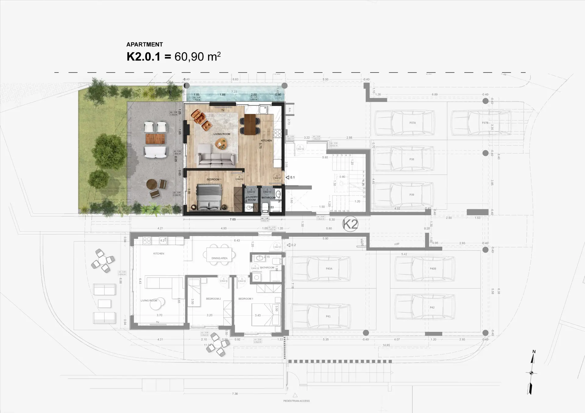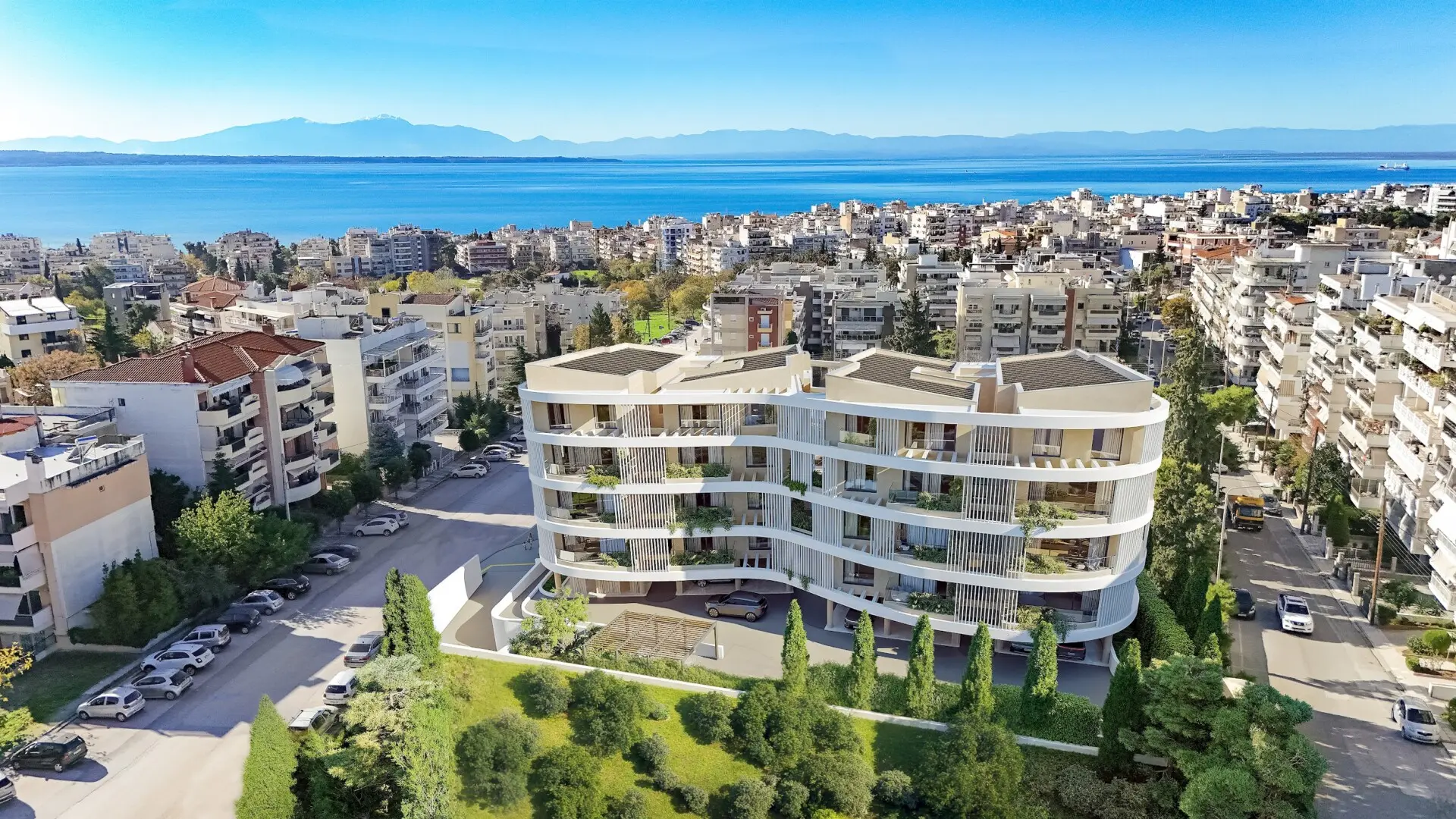 For sale is a modern apartment in a newly built premium residential complex located in one of the most prestigious seaside areas of Thessaloniki, Kalamaria. The property is situated in a quiet and fully developed residential area just a few minutes from the sea, with easy access to the city center and a metro station only 250 m away, as well as all essential infrastructure, making it ideal for both comfortable living and investment. The complex consists of two buildings of up to four floors and a total of 33 apartments, featuring contemporary architecture focused on light, space, and privacy, while the gated and landscaped grounds include a green inner courtyard, walking paths, relaxation areas, a private park, a children’s playground, and an outdoor barbecue area. Residents enjoy exclusive access to a fully equipped indoor gym and a recreation area with lounge space and kitchen. The apartment offers a functional layout with a spacious living room and open-plan kitchen, bathroom, WC with shower, a separate laundry room, and a comfortable balcony, with large windows providing abundant natural light. High-quality modern materials, a smart home system, and gas underfloor heating are included, with A+ energy efficiency standards. All apartments include a private storage room, while apartments with two bedrooms or more also include a private parking space, with both underground and above-ground parking available. Kalamaria is one of the most sought-after areas of Thessaloniki, offering proximity to the sea, marinas, parks, cafés, and restaurants, along with fast access to the city center via the metro, and project completion is scheduled for the first half of 2028, making this property an excellent choice for seaside living or a secure real estate investment.
