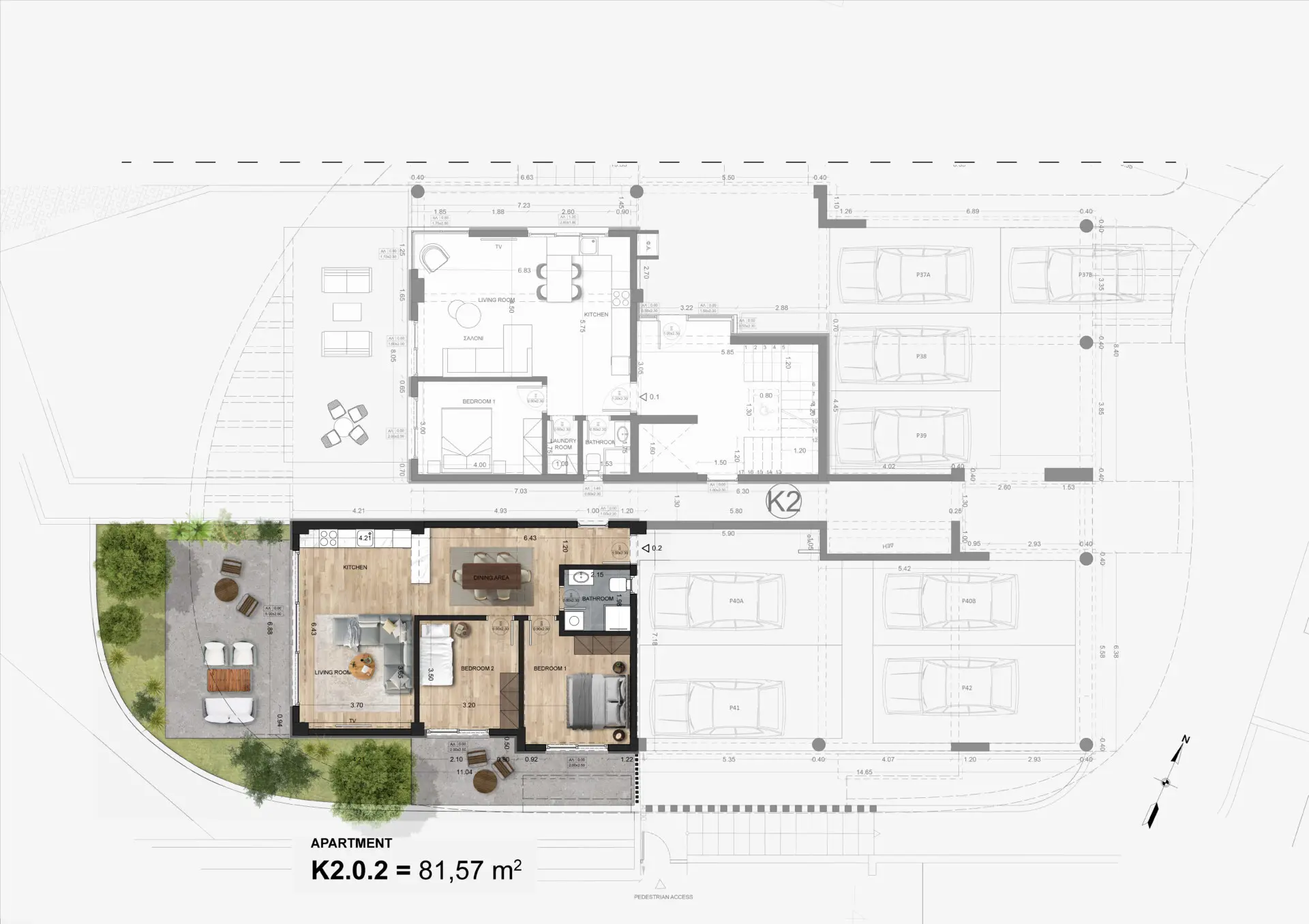 The residential complex consists of two buildings of up to four floors and includes 33 apartments of various types. The project features contemporary architecture with an emphasis on light, space, and privacy. The gated and landscaped grounds include a green inner courtyard with walking paths, relaxation areas, a private park, a children’s playground, and a dedicated outdoor barbecue area for social gatherings. Residents have exclusive access to a fully equipped indoor gym and a recreation area with lounge space and kitchen.