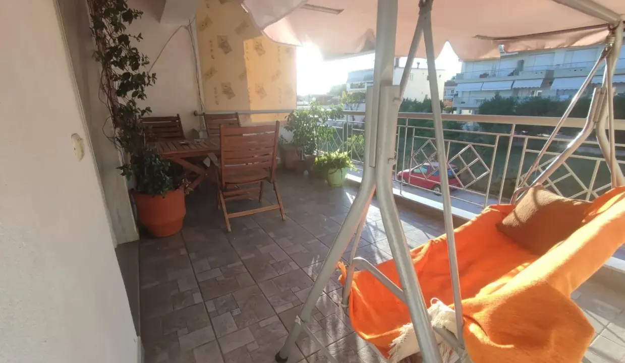 For sale: A stunning, bright 86 sq.m. apartment on the 1st floor of a building constructed in 2007. It consists of 2 bedrooms, an additional space that can be converted into a third bedroom, a spacious living room, a kitchen, a bathroom, and large balconies at the front and the bedrooms. The apartment features a reinforced security door, energy-efficient synthetic window frames with double glazing, insect screens, ceramic tile flooring, awnings, a water heater, air conditioning, and central oil heating. The property also includes an elevator and two parking spaces. It is centrally located, close to public transport stops, shopping stores, supermarkets, schools, an open-air market, parks, and the ESY Lagkada – Health Center.