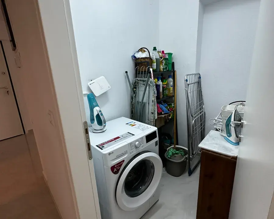 The apartment features two spacious bedrooms with plenty of natural light, tasteful decoration, and modern amenities such as air conditioning units, wardrobes, and ergonomic furniture. The living room is seamlessly connected to the kitchen, creating a bright open-plan space that offers functionality and everyday comfort. The kitchen is fully equipped with modern cabinets, built-in appliances, and ample storage space.