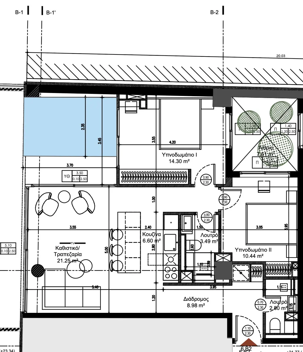 A modern apartment (B-B2) of 94 sq.m. that perfectly combines comfort, functionality, and high aesthetics.