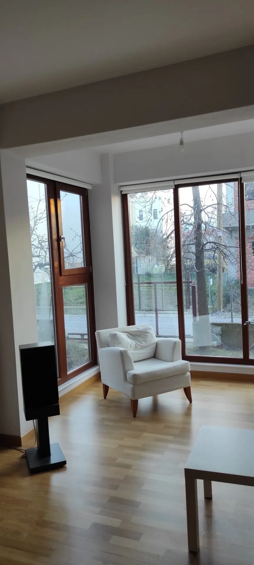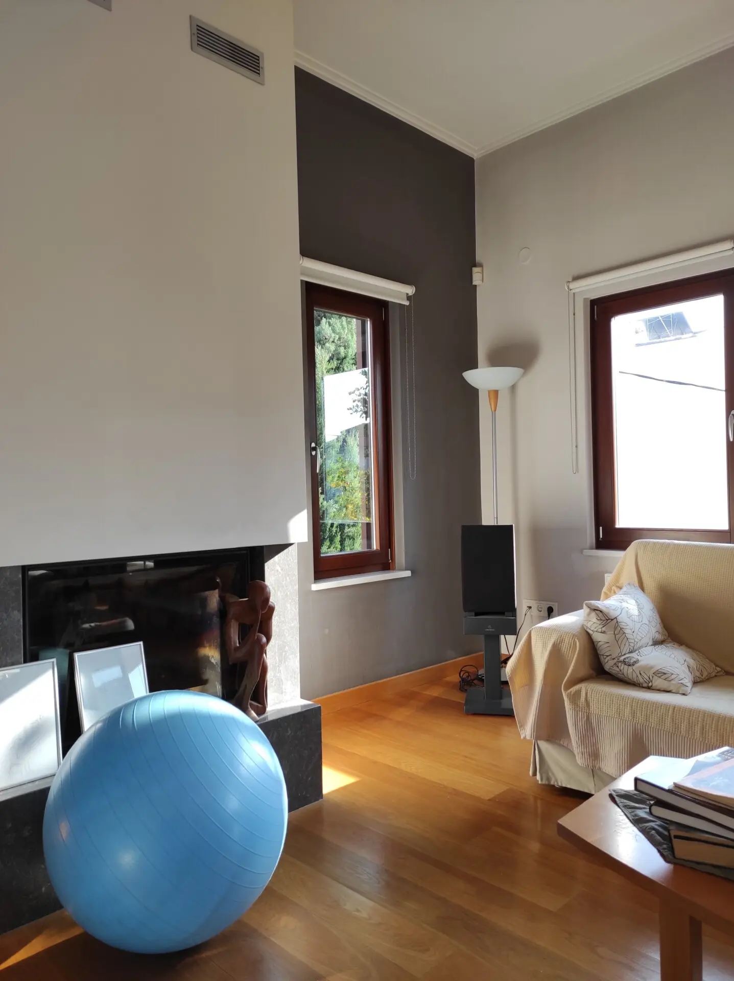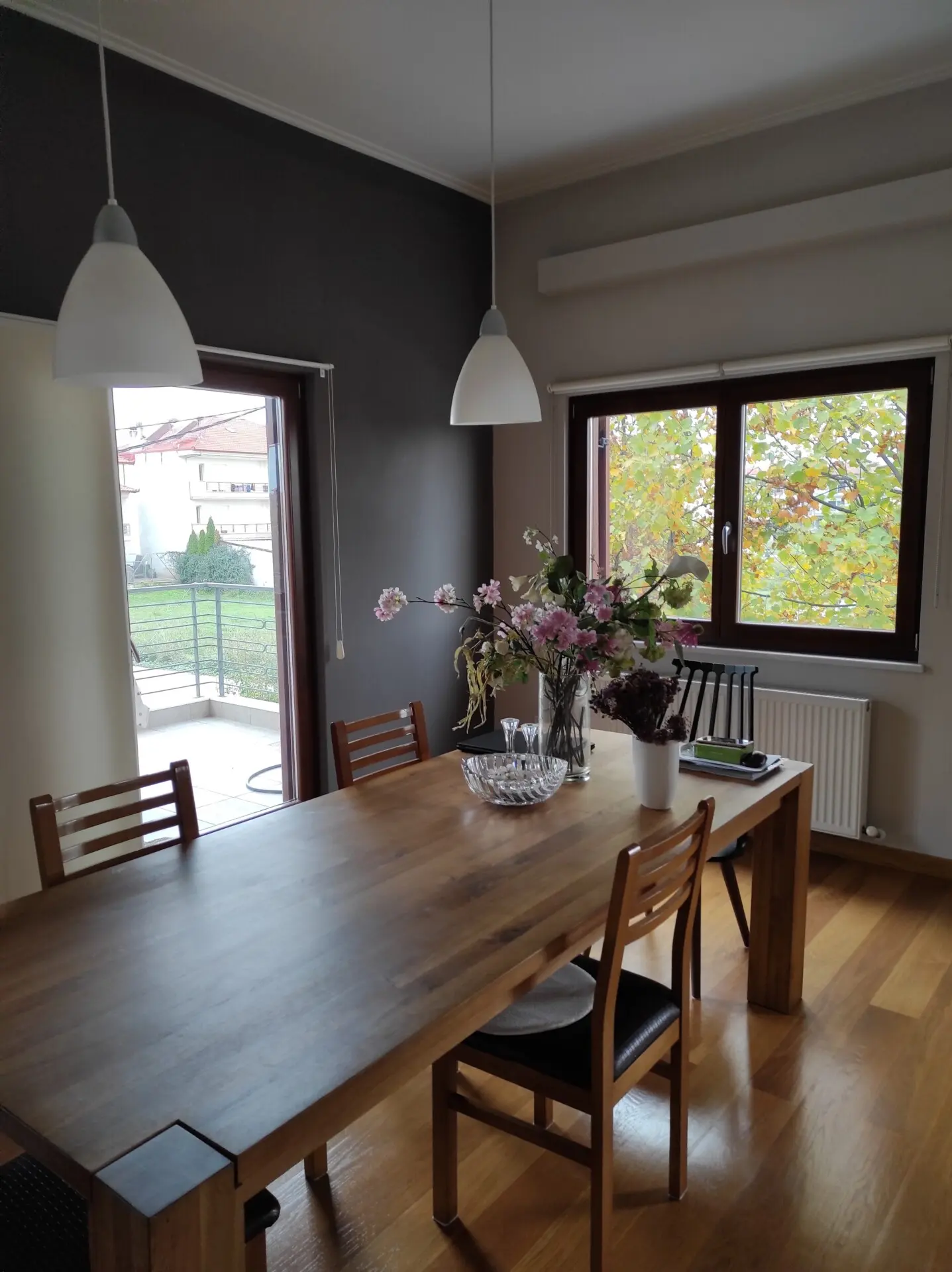 The maisonette of the first and second floors, with a total area of 230 sq.m., is connected by an internal wooden staircase made of solid oak. The first floor includes a spacious kitchen, living-dining area, bathroom, and office, while the second floor has four comfortable bedrooms, a dressing room, and a bathroom.