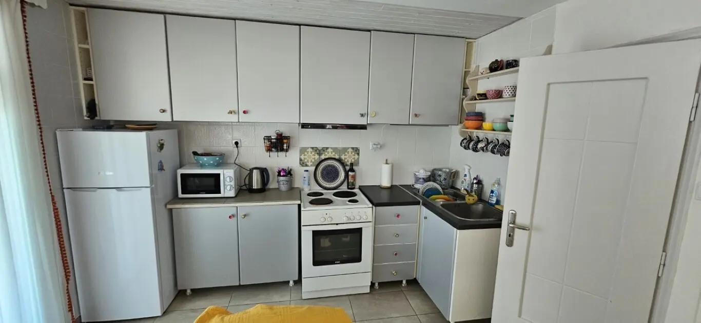 A 70 sq.m. detached house is for sale in Potidaia, Halkidiki. The property is developed over two levels, with the ground floor featuring an open-plan living room with kitchen and a WC with shower, while the first floor consists of two bedrooms and an additional WC. The house is equipped with air conditioning and offers parking space. It is an ideal choice for a holiday home or investment use in a beautiful and privileged location.