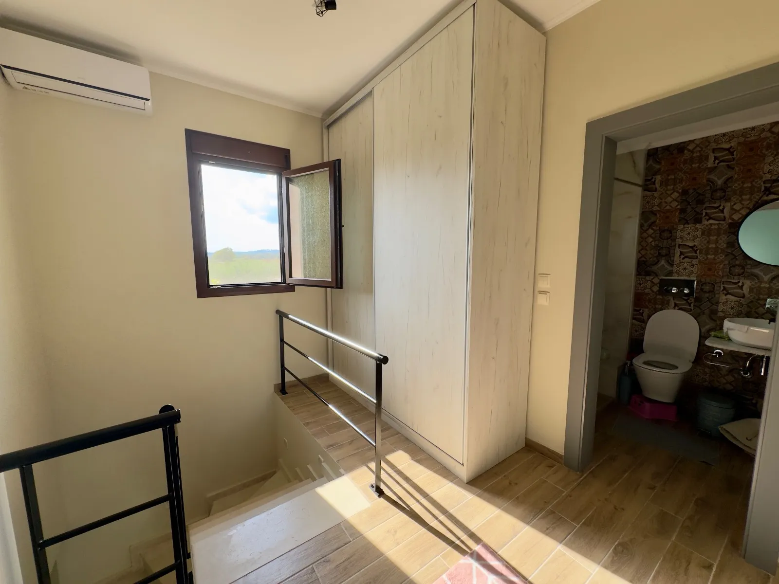 A 97 sq.m. detached house is for sale in Afytos, Halkidiki. The property is developed over two levels, with the ground floor featuring an open-plan living room with kitchen and a WC, while the first floor consists of three bedrooms and two WCs with shower. The house is equipped with a solar water heater, central heating, air conditioning units, and a fireplace, and also offers parking space. It is an ideal choice for a permanent residence or a holiday home, combining comfort and functionality in a privileged location.