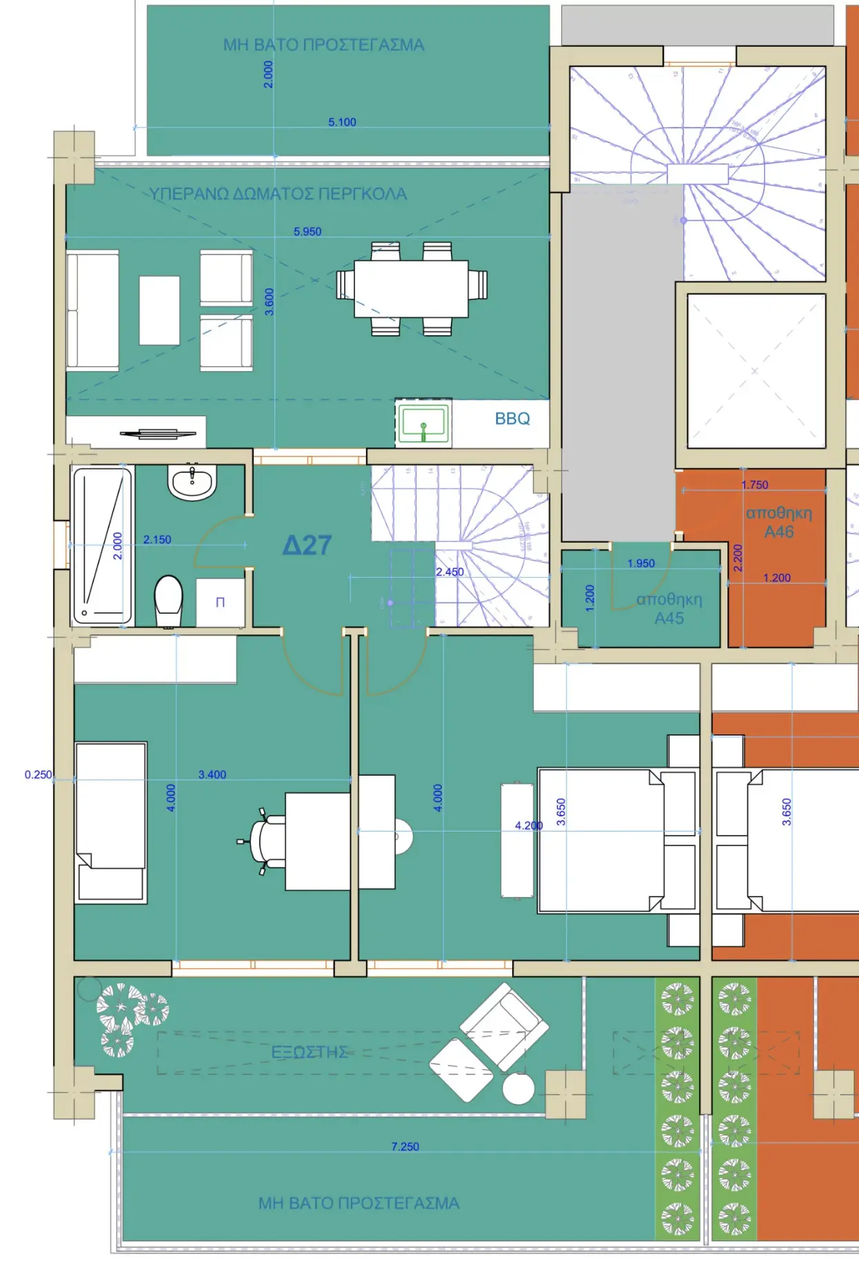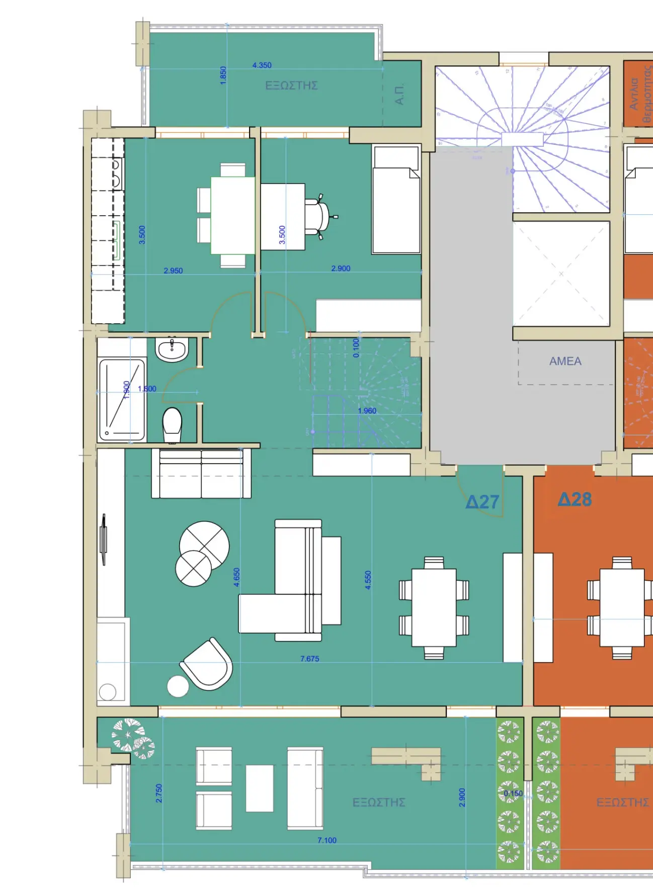 For sale is a modern maisonette Δ-Δ 27 with a total area of 155  sq.m., located on the 3-4 st floor of Building Δ in a new premium residential complex consisting of six residential buildings, situated in the prestigious area of Kalamaria, Thessaloniki. The complex combines high construction quality, elegant contemporary architecture and advanced energy-saving technologies, offering a high level of comfort and quality of life. The apartment features a functional layout and consists of a living room , kitchen, 3 bedrooms, 2 bathroom, and 4 balconies, providing excellent natural light and comfortable living spaces. The property has Energy Class A and is equipped with a state-of-the-art heat pump, underfloor heating and cooling system, and a certified external thermal insulation system of 10 cm, ensuring maximum energy efficiency throughout the year. It includes aluminum window frames with thermal break and energy-efficient glazing, a security entrance door, granite tile flooring, and balcony railings made of laminated safety glass 8+8 mm. The apartment is delivered with a fully fitted kitchen and built-in wardrobes, video intercom, central TV antenna, fire detection system, as well as pre-installation for air conditioning and an alarm system. Additional features include an individual ground-level parking space and an underground storage room with elevator access. The metro station is just 150 meters away, making this property an excellent choice for both comfortable living and investment