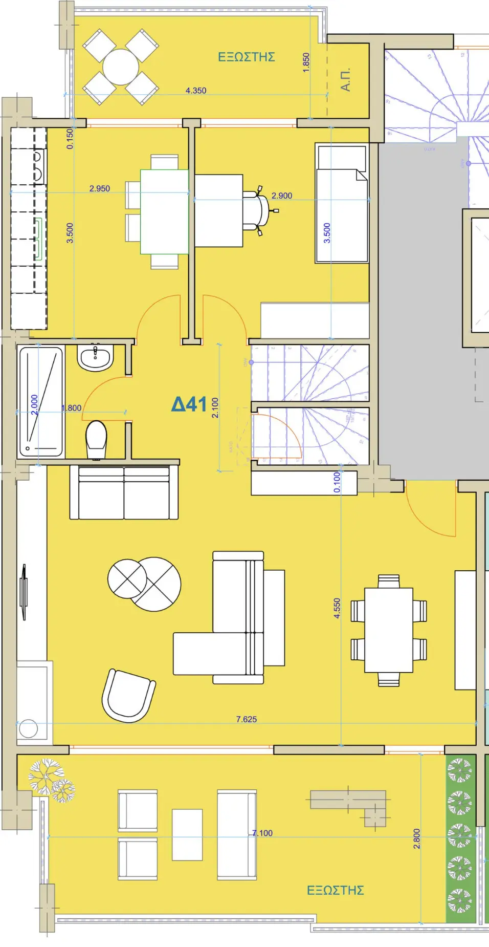 For sale is a modern maisonette ΣΤ-Δ 41 with a total area of 155  sq.m., located on the 3-4 st floor of Building ΣΤ in a new premium residential complex consisting of six residential buildings, situated in the prestigious area of Kalamaria, Thessaloniki. The complex combines high construction quality, elegant contemporary architecture and advanced energy-saving technologies, offering a high level of comfort and quality of life. The apartment features a functional layout and consists of a living room , kitchen, 3 bedrooms, 2 bathroom, and 3 balconies, providing excellent natural light and comfortable living spaces. The property has Energy Class A and is equipped with a state-of-the-art heat pump, underfloor heating and cooling system, and a certified external thermal insulation system of 10 cm, ensuring maximum energy efficiency throughout the year. It includes aluminum window frames with thermal break and energy-efficient glazing, a security entrance door, granite tile flooring, and balcony railings made of laminated safety glass 8+8 mm. The apartment is delivered with a fully fitted kitchen and built-in wardrobes, video intercom, central TV antenna, fire detection system, as well as pre-installation for air conditioning and an alarm system. Additional features include an individual ground-level parking space and an underground storage room with elevator access. The metro station is just 150 meters away, making this property an excellent choice for both comfortable living and investment