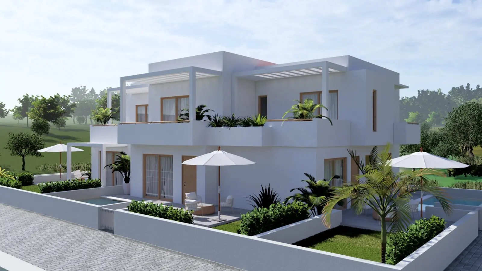 For sale: townhouse of 151 sq.m located in Metamorfosi, Halkidiki. The layout includes on the ground floor a living room combined with a kitchen, one bedroom, and a bathroom with a shower; on the first floor three bedrooms, one WC, and an additional bathroom with a shower. The plot has an area of 390 sq.m, and each townhouse will have its own exclusive outdoor area. Cooling is provided by air conditioning units in every room, while heating (upon agreement and at an additional cost) can be installed as underfloor heating with an independent heat pump for each townhouse. The price includes a fully equipped kitchen with electrical appliances, complete bathrooms with sanitary fittings, a solar water heater, PVC window frames with wood imitation and energy-efficient glazing, mosquito screens on all openings, and shutters on the large ground-floor windows. The outdoor area will be landscaped and equipped with an irrigation system and security alarm.