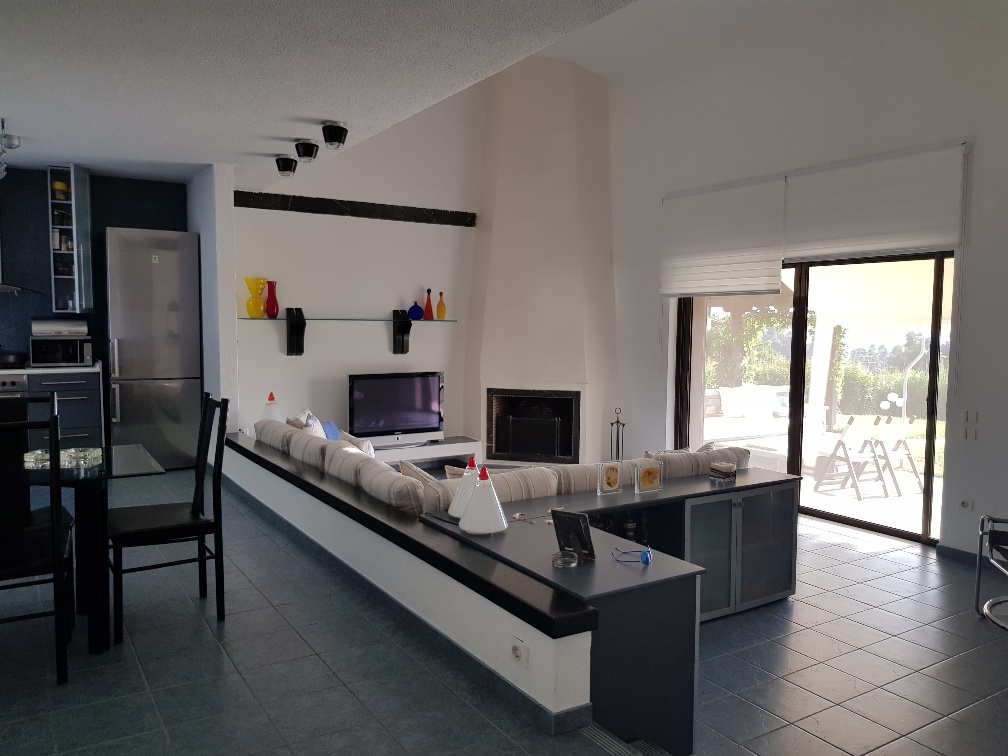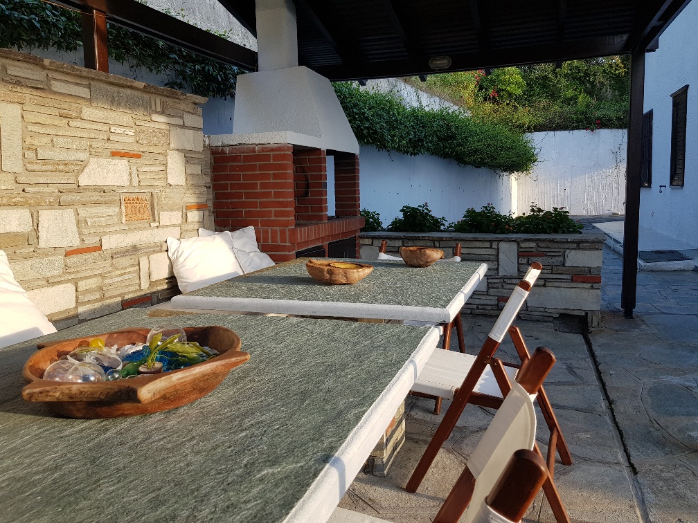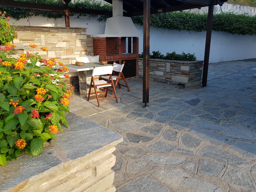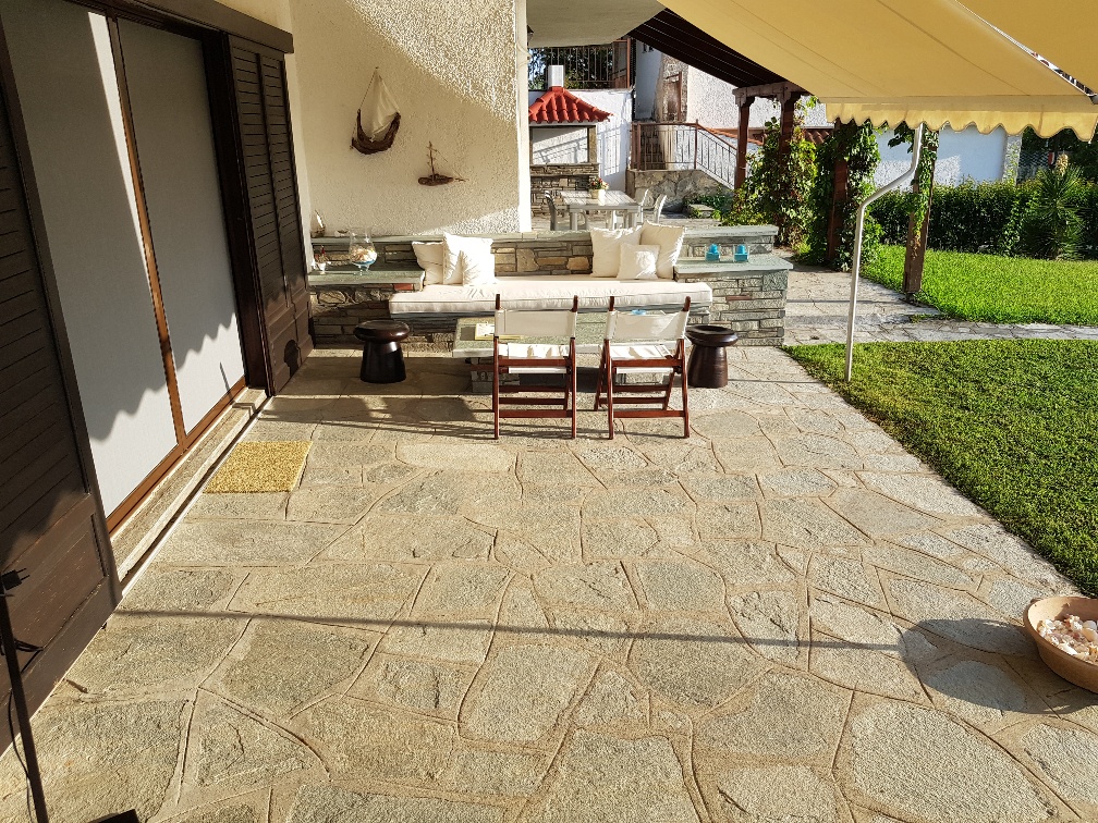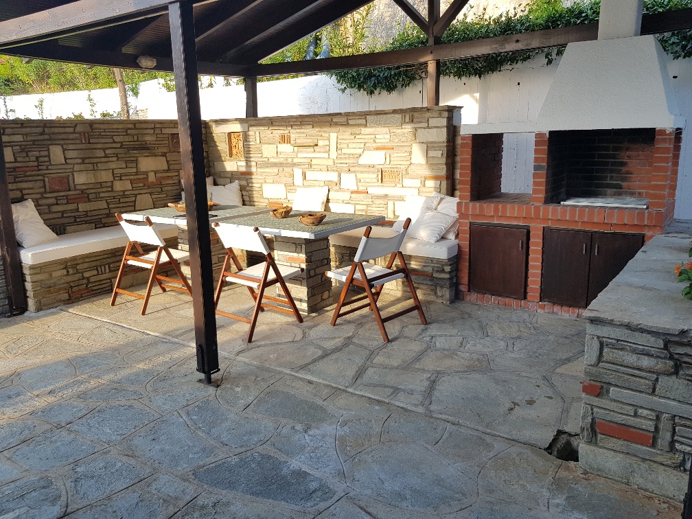 The property is sold furnished and includes a solar water heater, fireplace, and air conditioning, ensuring comfort throughout the year. It also offers a parking space, a landscaped garden with lawn, a barbecue area, heating, and additional storage space, fully covering the needs of a family. It is an excellent choice for those seeking a quality property in one of the most beautiful areas of Halkidiki.