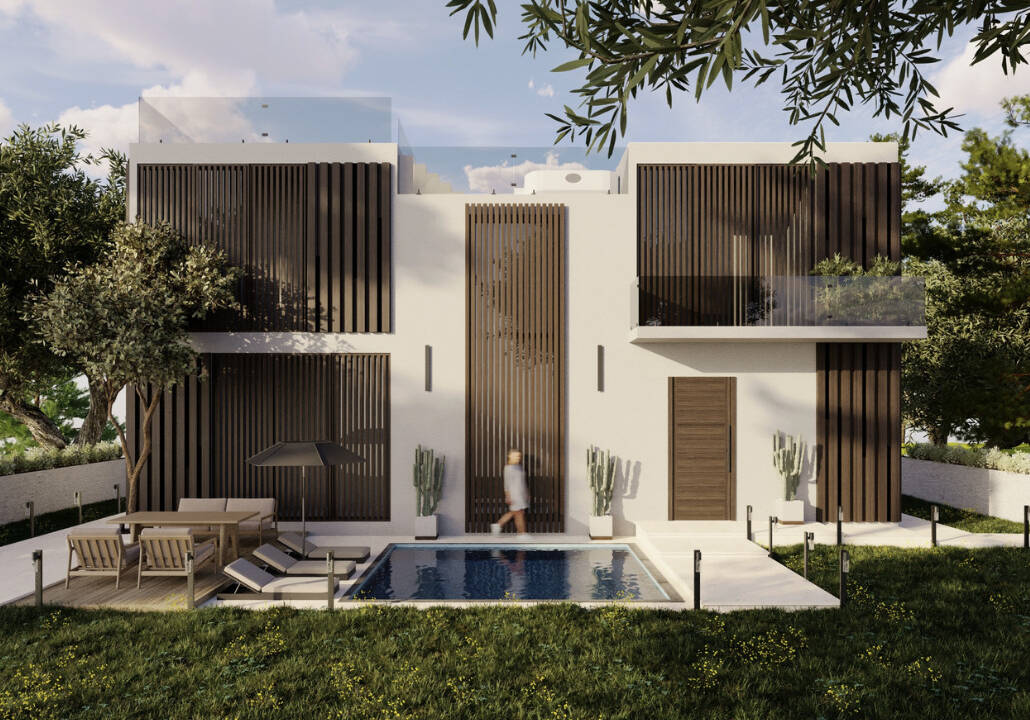 Each villa will have a built footprint of 60 square meters and a total net area of 120 square meters spread over two floors. Additionally, there will be 54 square meters of terrace and balcony space. The architectural concept allows each villa to be used as two separate 60-square-meter apartments. The floors are connected by an internal staircase, making it suitable for both unified living or dual rental use, which is ideal for the tourism market.