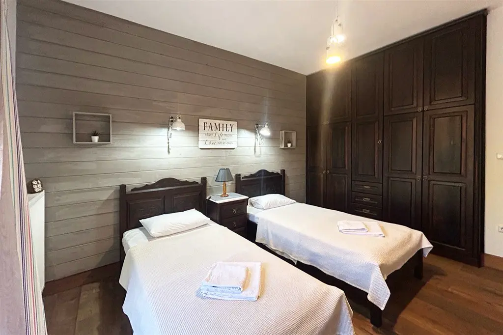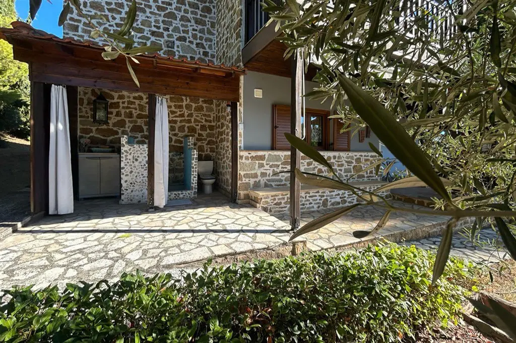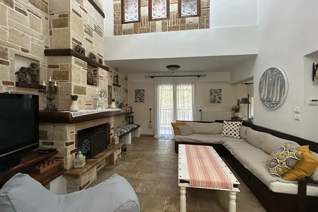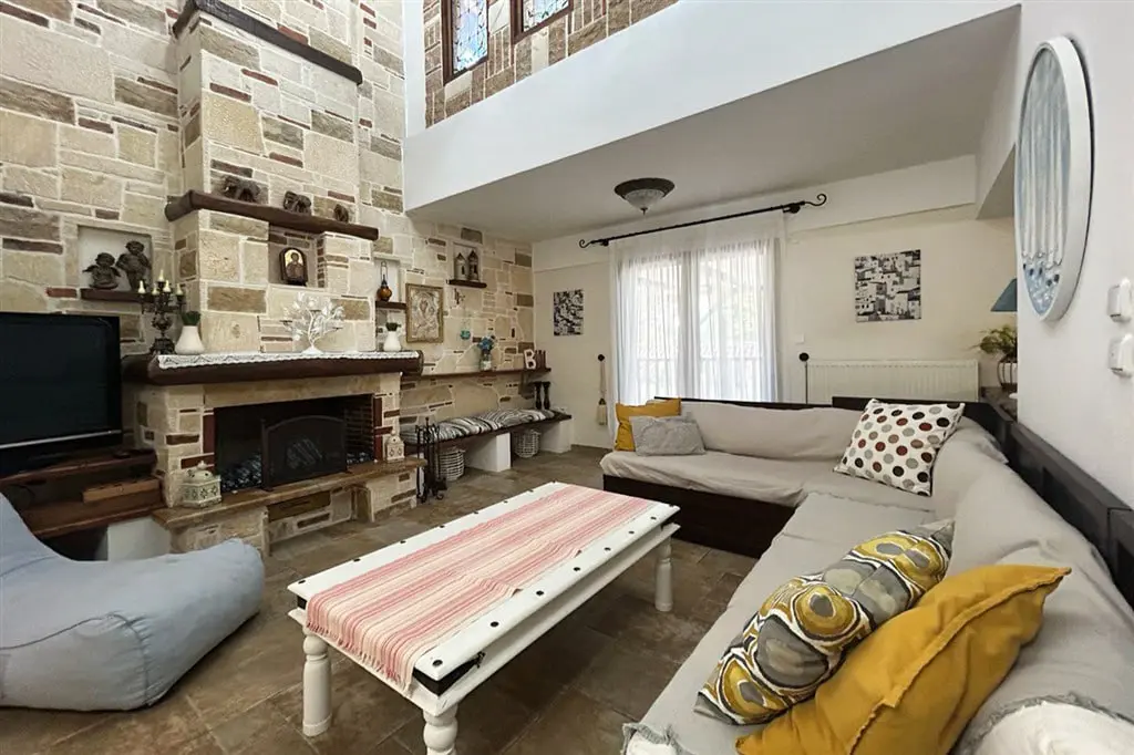 For sale: villa in Nikiti, Sithonia (Halkidiki). A spacious and fully furnished villa of 200 m² situated on a 2000 m² plot in a picturesque and quiet area, close to the sea and local amenities. The ground floor features a living room with a dining area and kitchen, one bedroom, and a bathroom with a bathtub. The second floor includes two bedrooms and a bathroom with a shower. The third floor has one bedroom and a bathroom with a shower. The house is fully furnished, and each room is equipped with air conditioning. An excellent option for permanent residence or vacation.