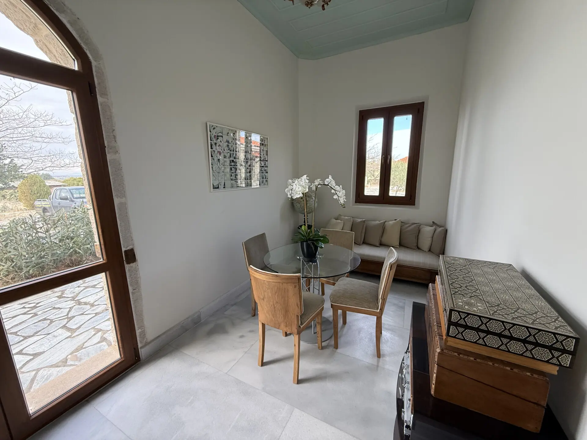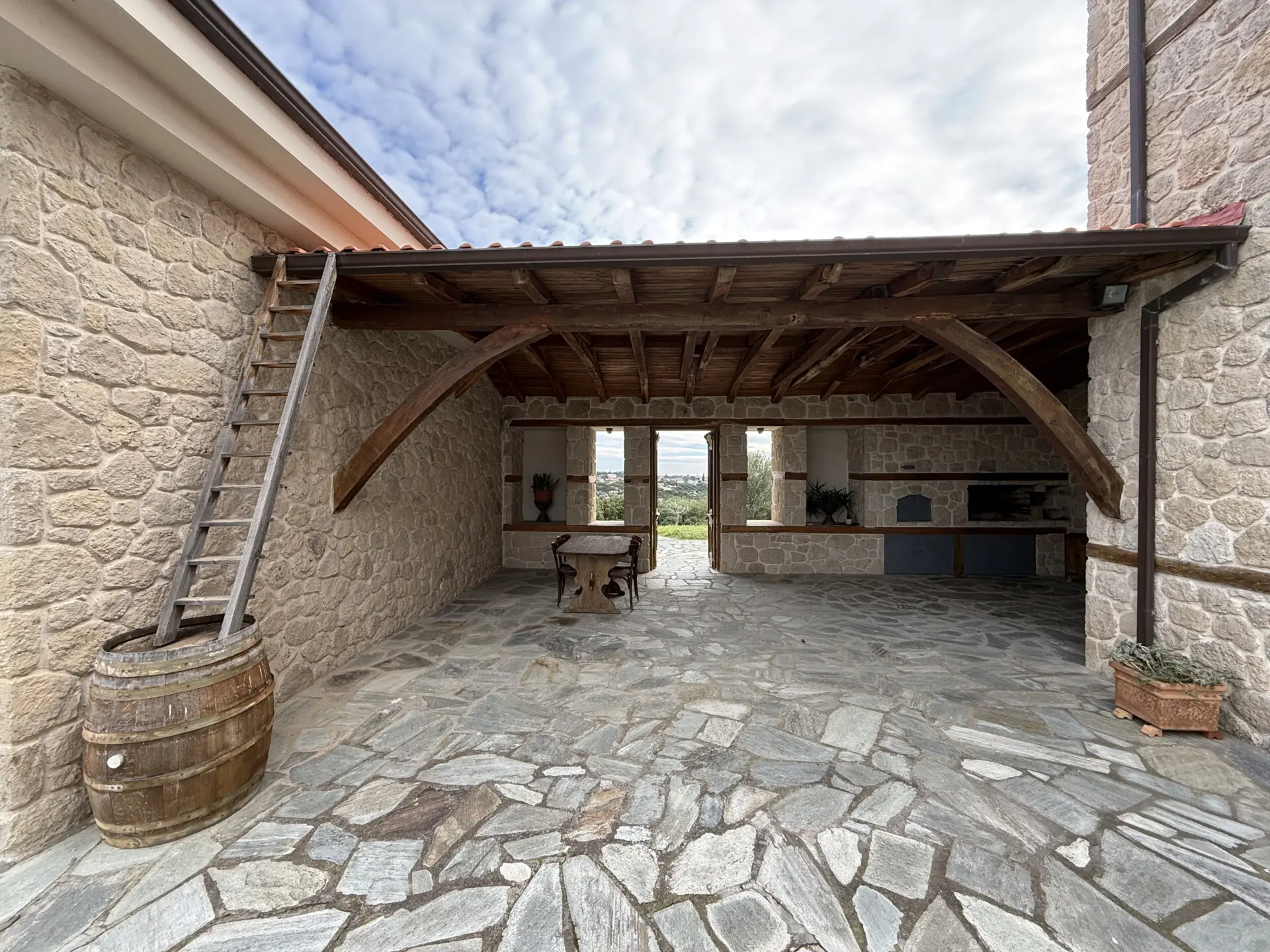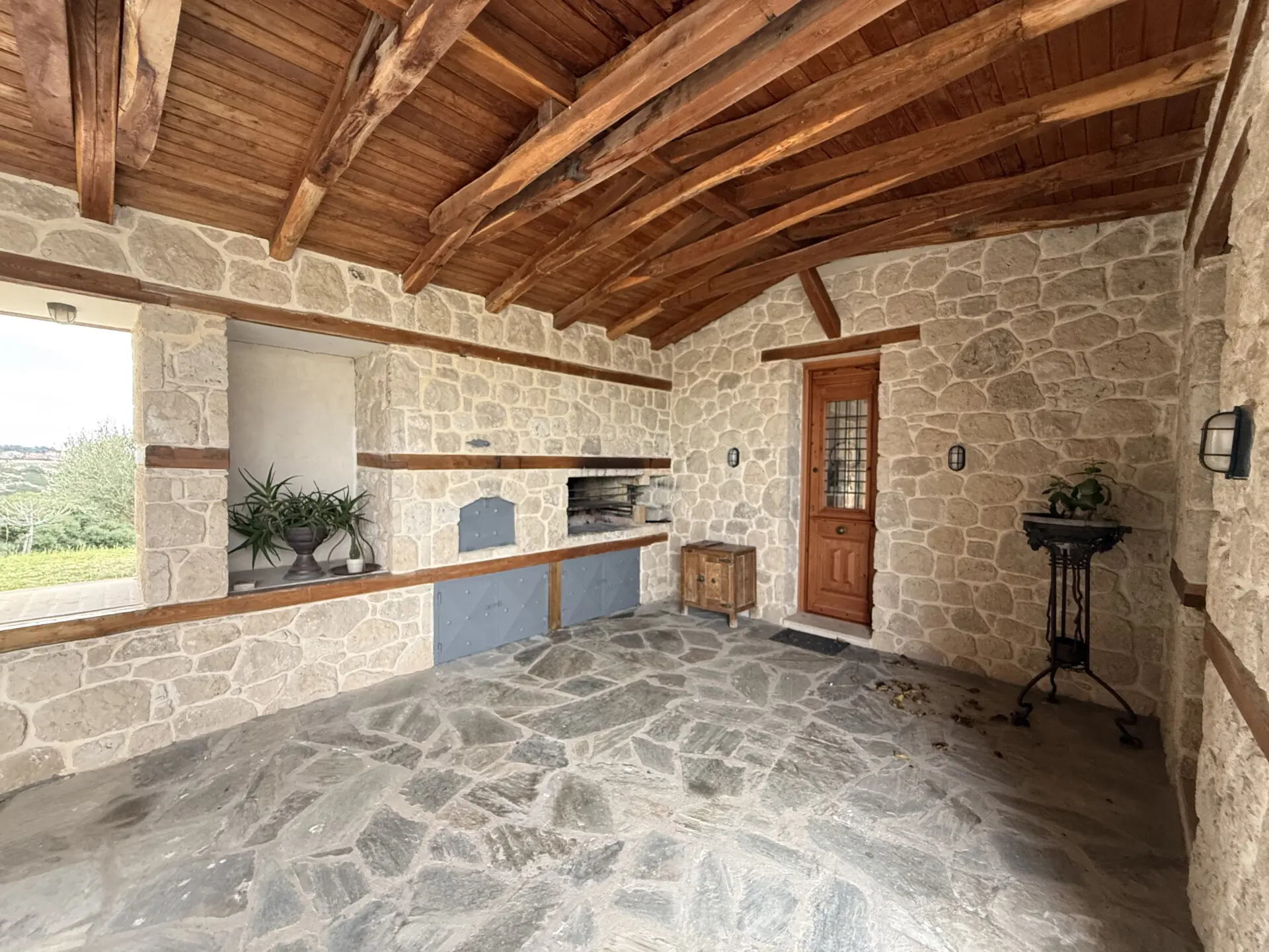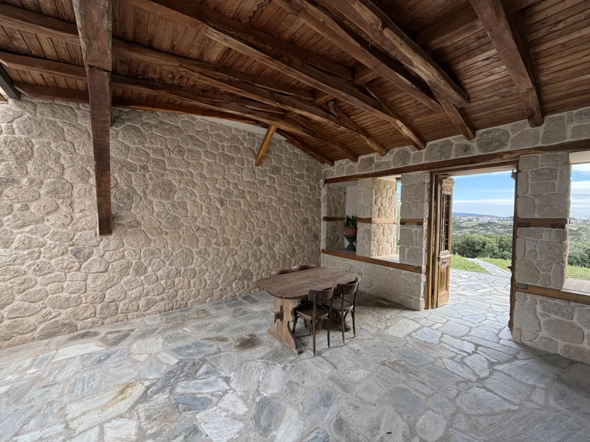 The main house of 400 sq.m. offers spacious, light-filled interiors with high ceilings, natural stone and marble floors, and large windows overlooking the sea and countryside. The layoutis ideal for both permanent living and hosting guests. A separate 130 sq.m. guest house provides additional privacy and independence.