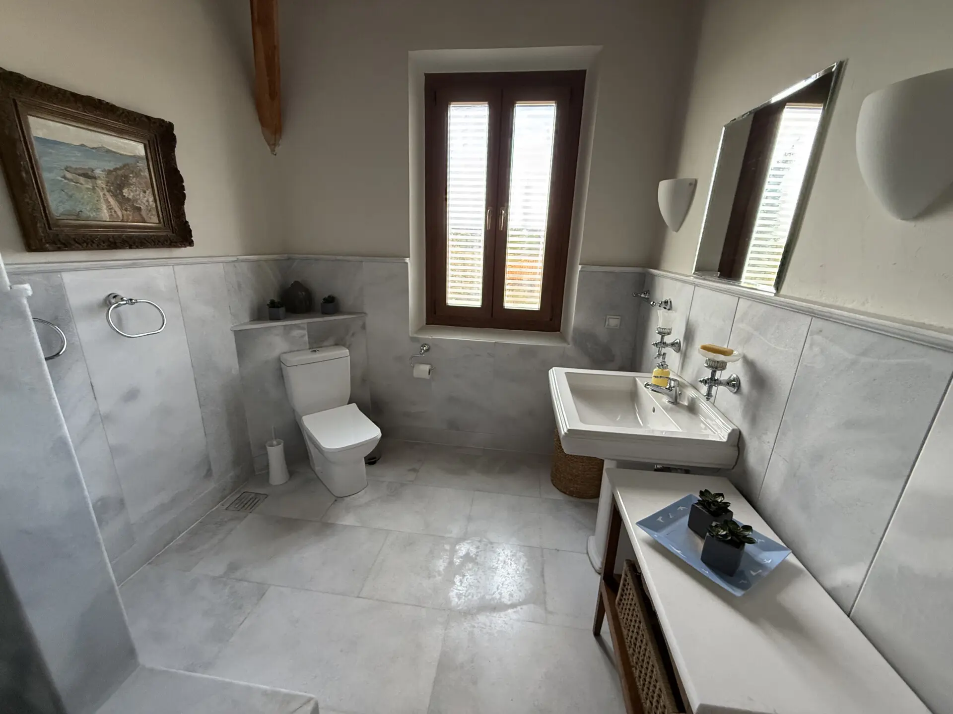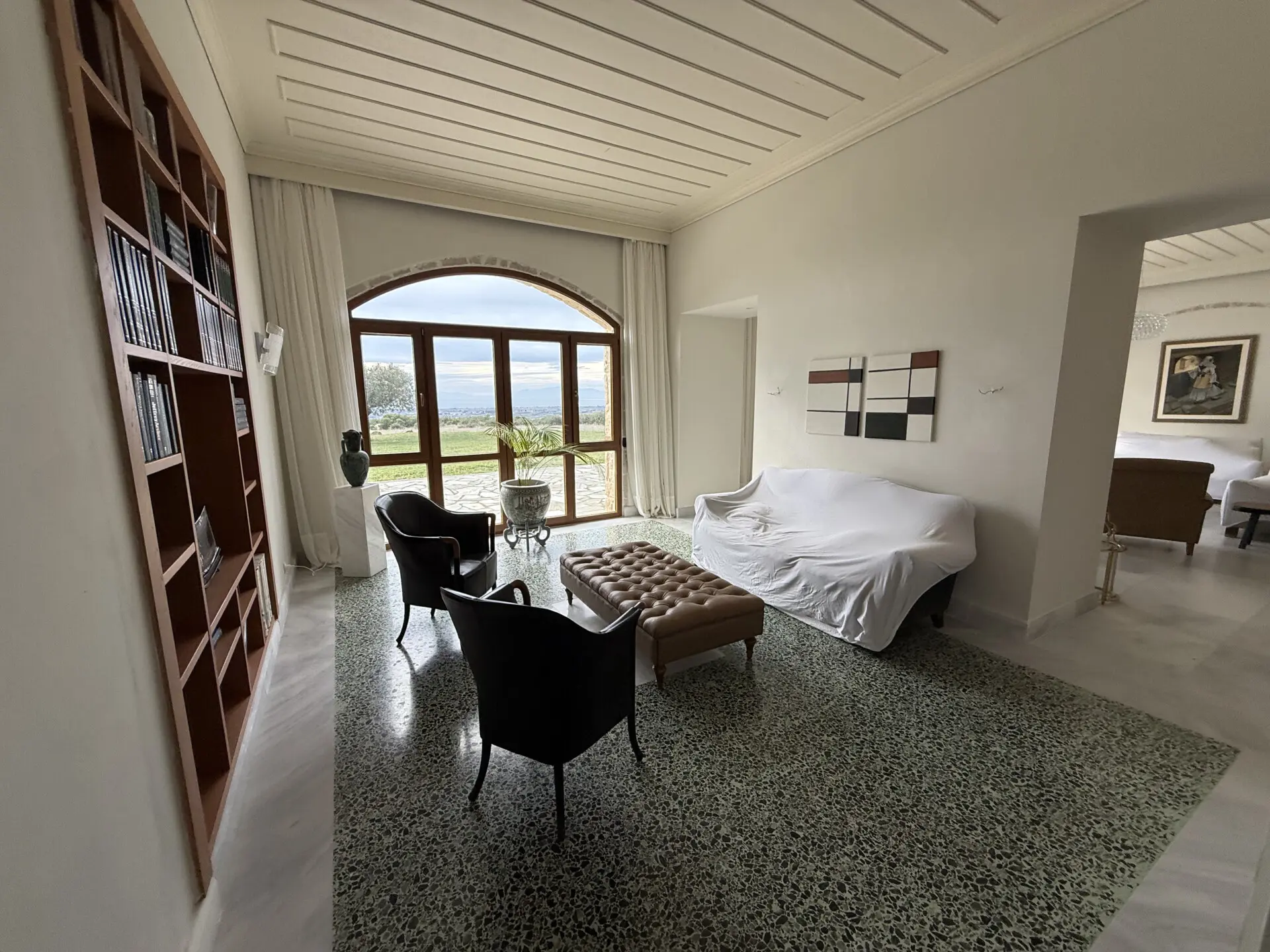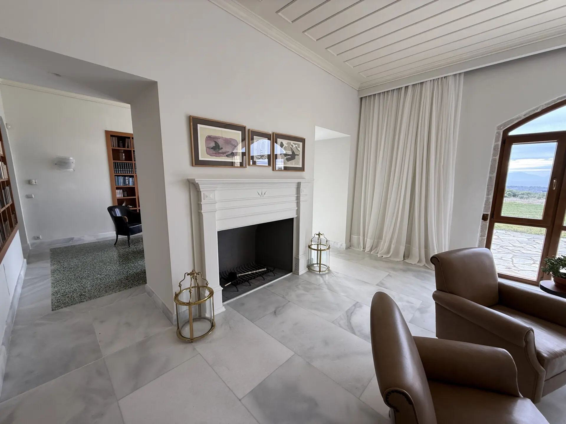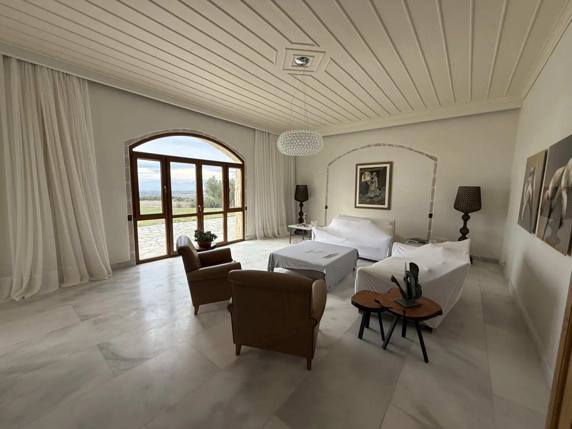 The main house of 400 sq.m. offers spacious, light-filled interiors with high ceilings, natural stone and marble floors, and large windows overlooking the sea and countryside. The layoutis ideal for both permanent living and hosting guests. A separate 130 sq.m. guest house provides additional privacy and independence.