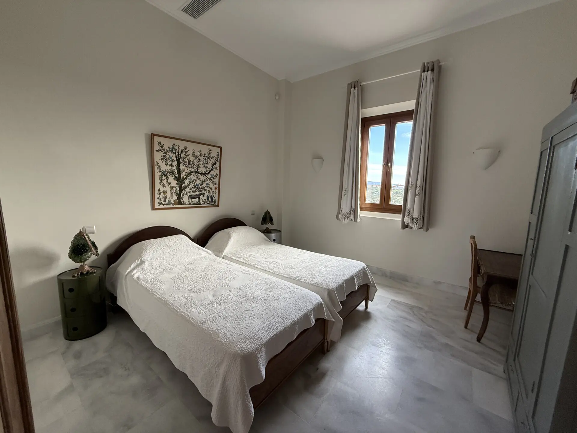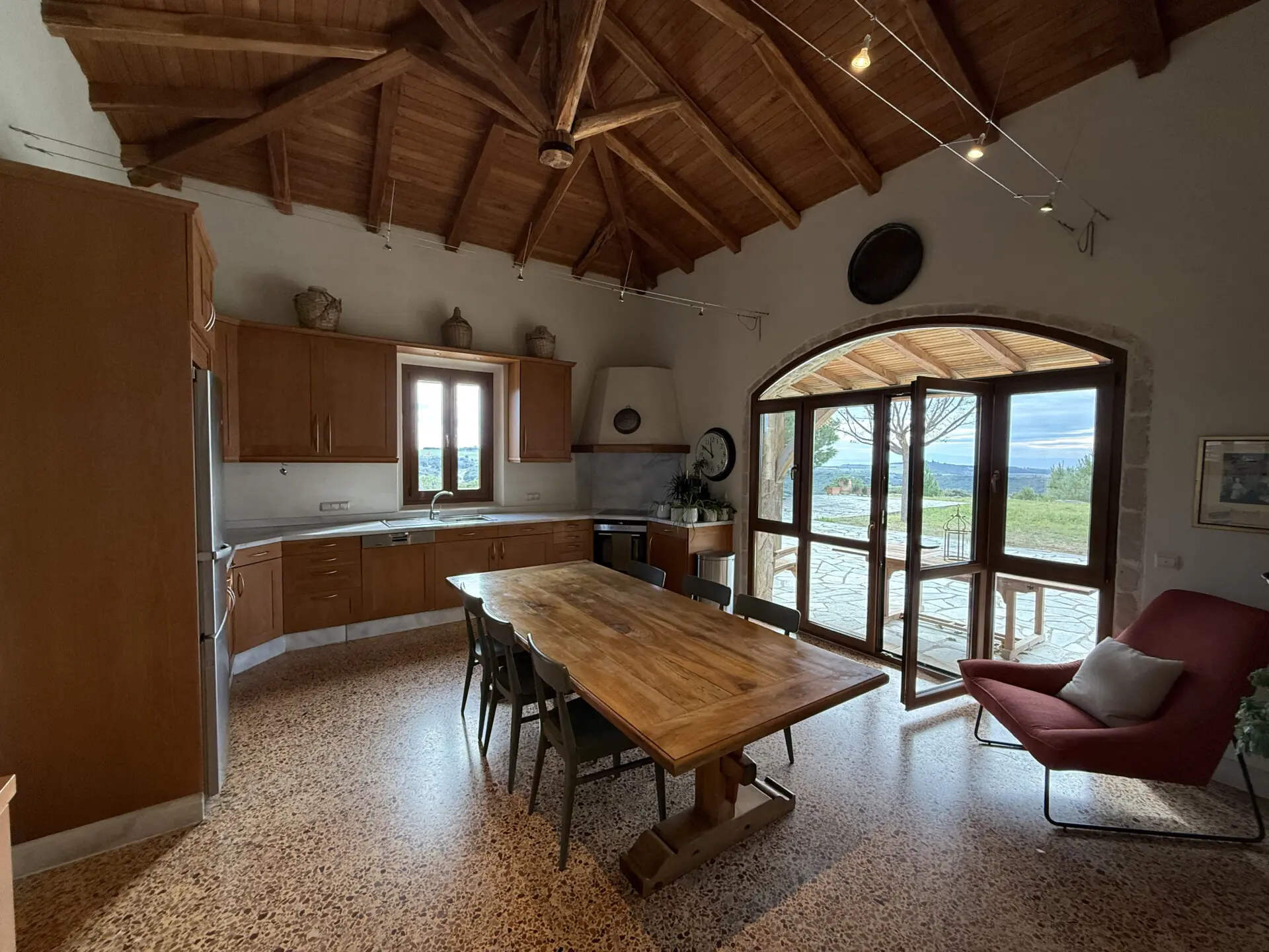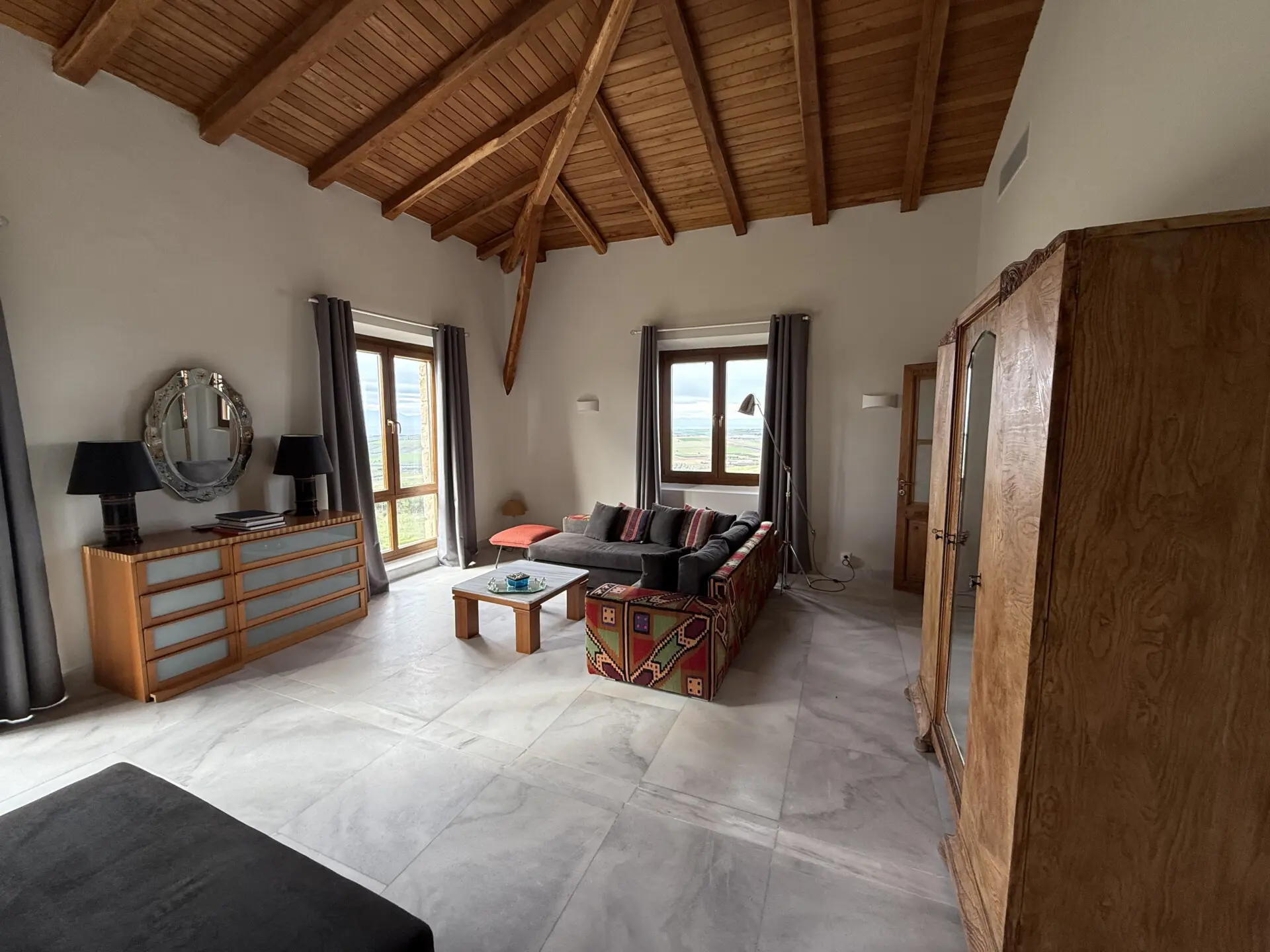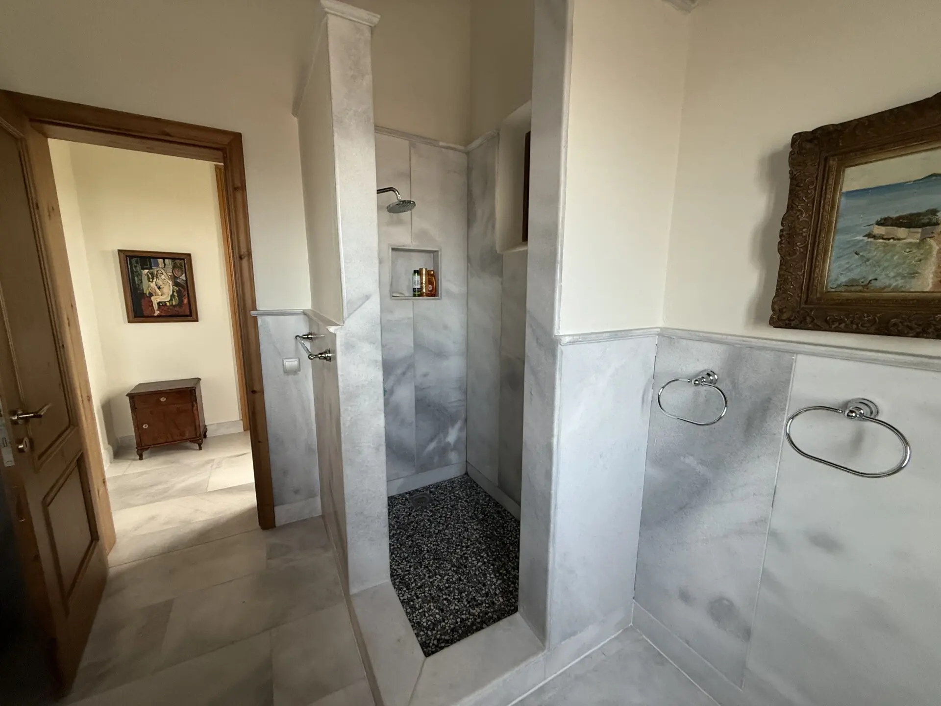 The main house of 400 sq.m. offers spacious, light-filled interiors with high ceilings, natural stone and marble floors, and large windows overlooking the sea and countryside. The layoutis ideal for both permanent living and hosting guests. A separate 130 sq.m. guest house provides additional privacy and independence.