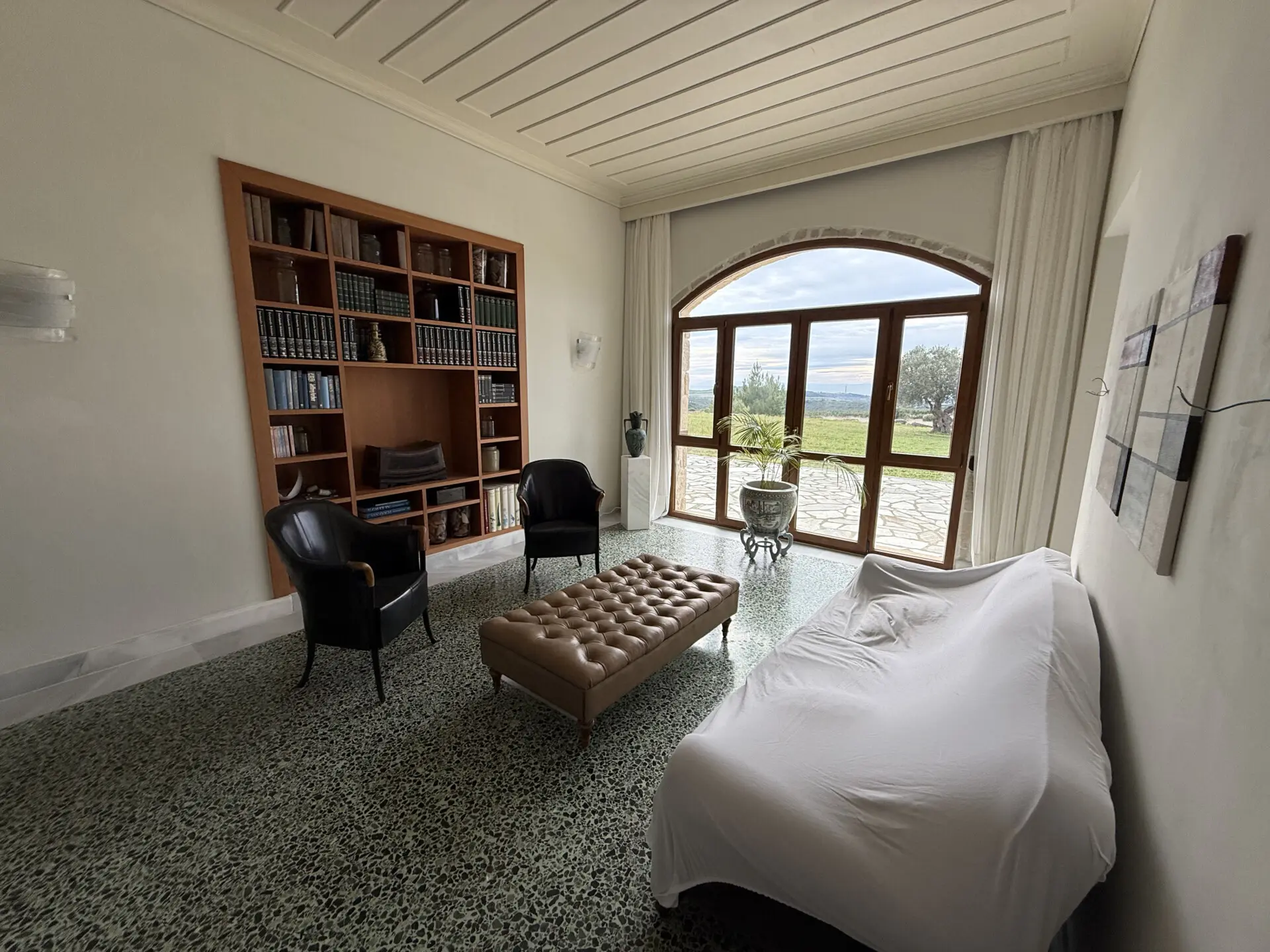The property includes a covered gazebo and barbecue area, a private helipad, and a designated area for a swimming pool. The pool is currently conserved, with all necessary permits in place. A private olive grove enhances the character of the estate. The villa is equipped with geothermal heating, ensuring energy efficiency and year-round comfort. A rare opportunity for those seeking privacy, views and authentic architecture in one of Greece’s most desirable regions.
