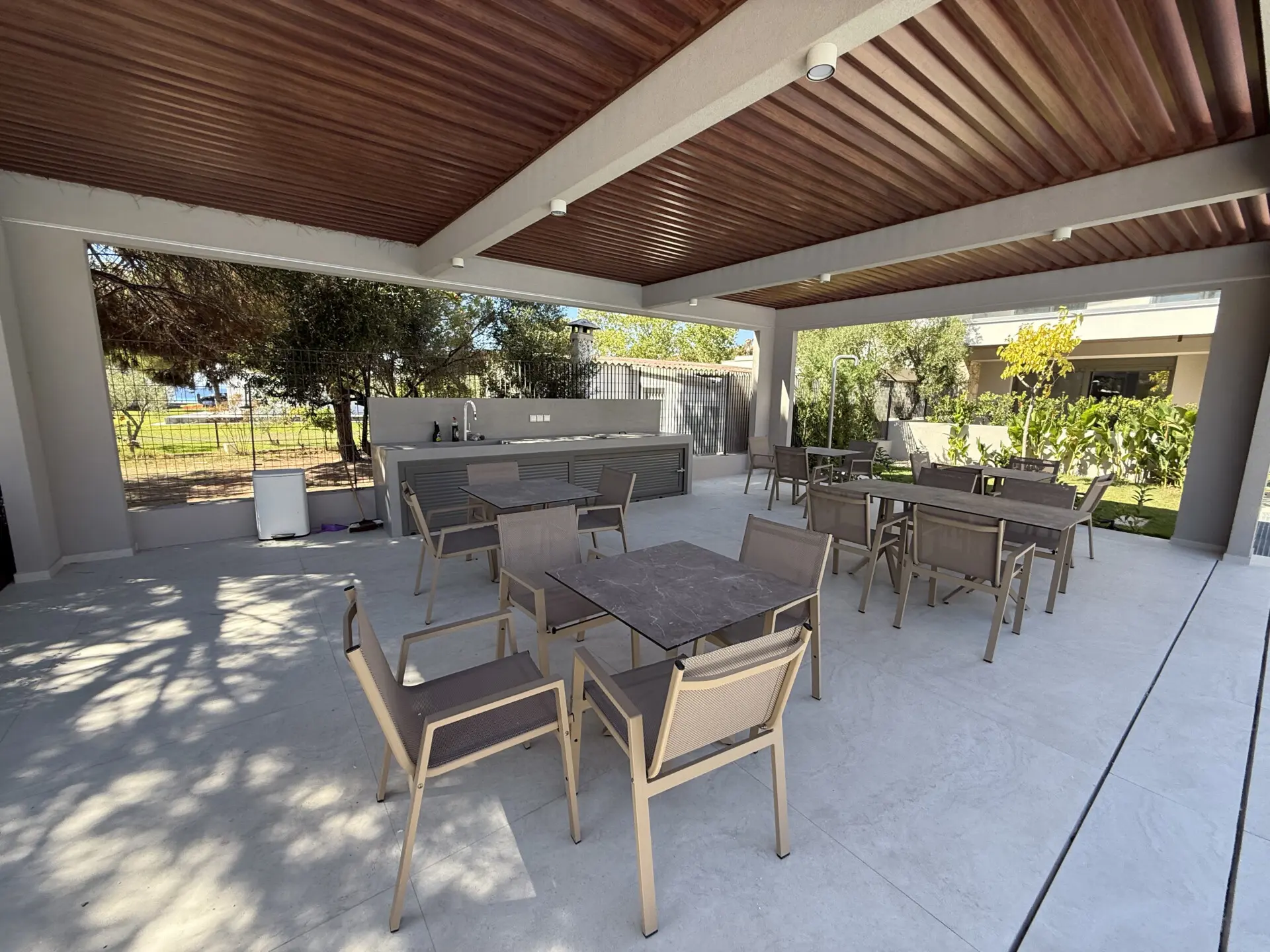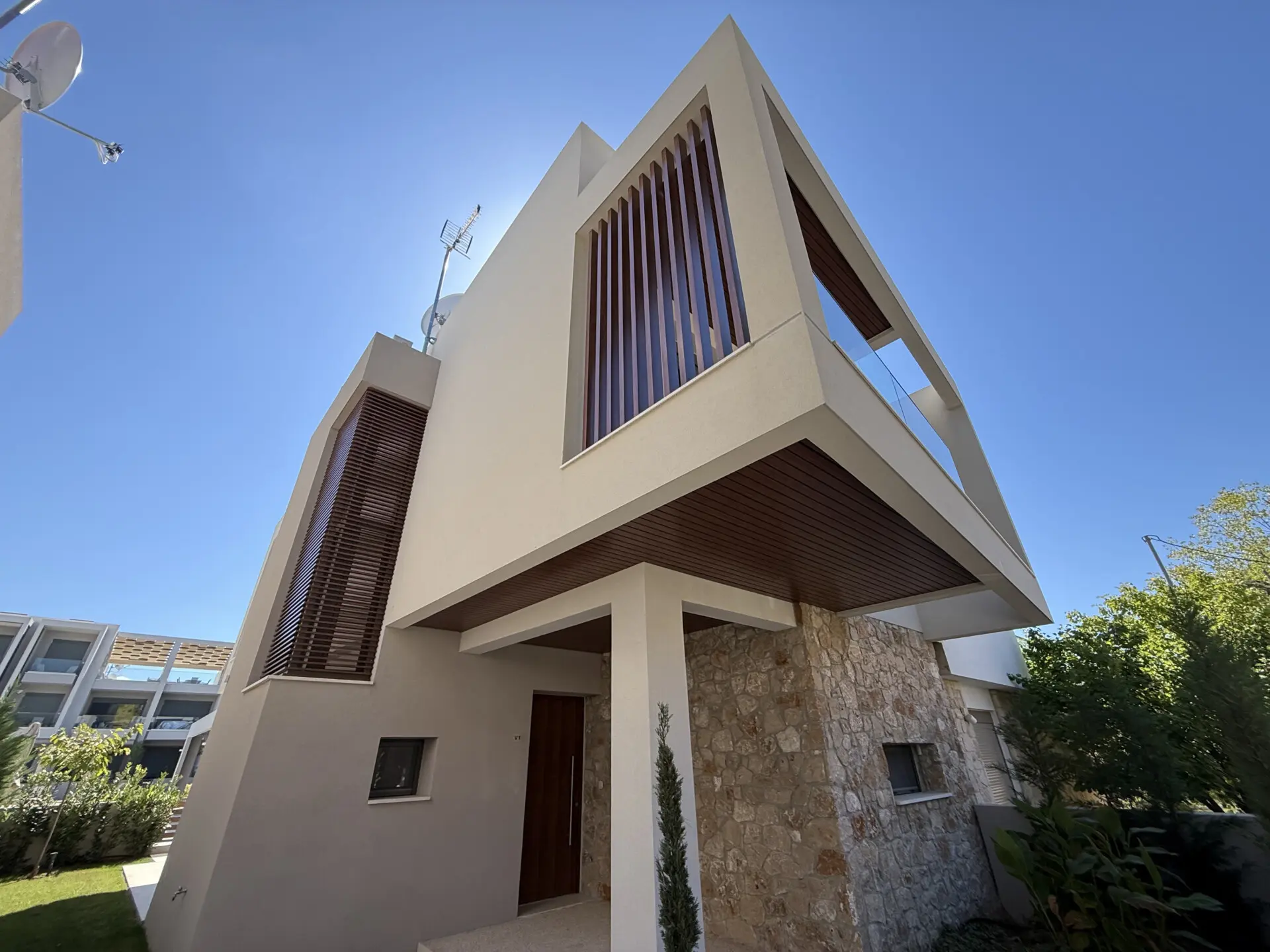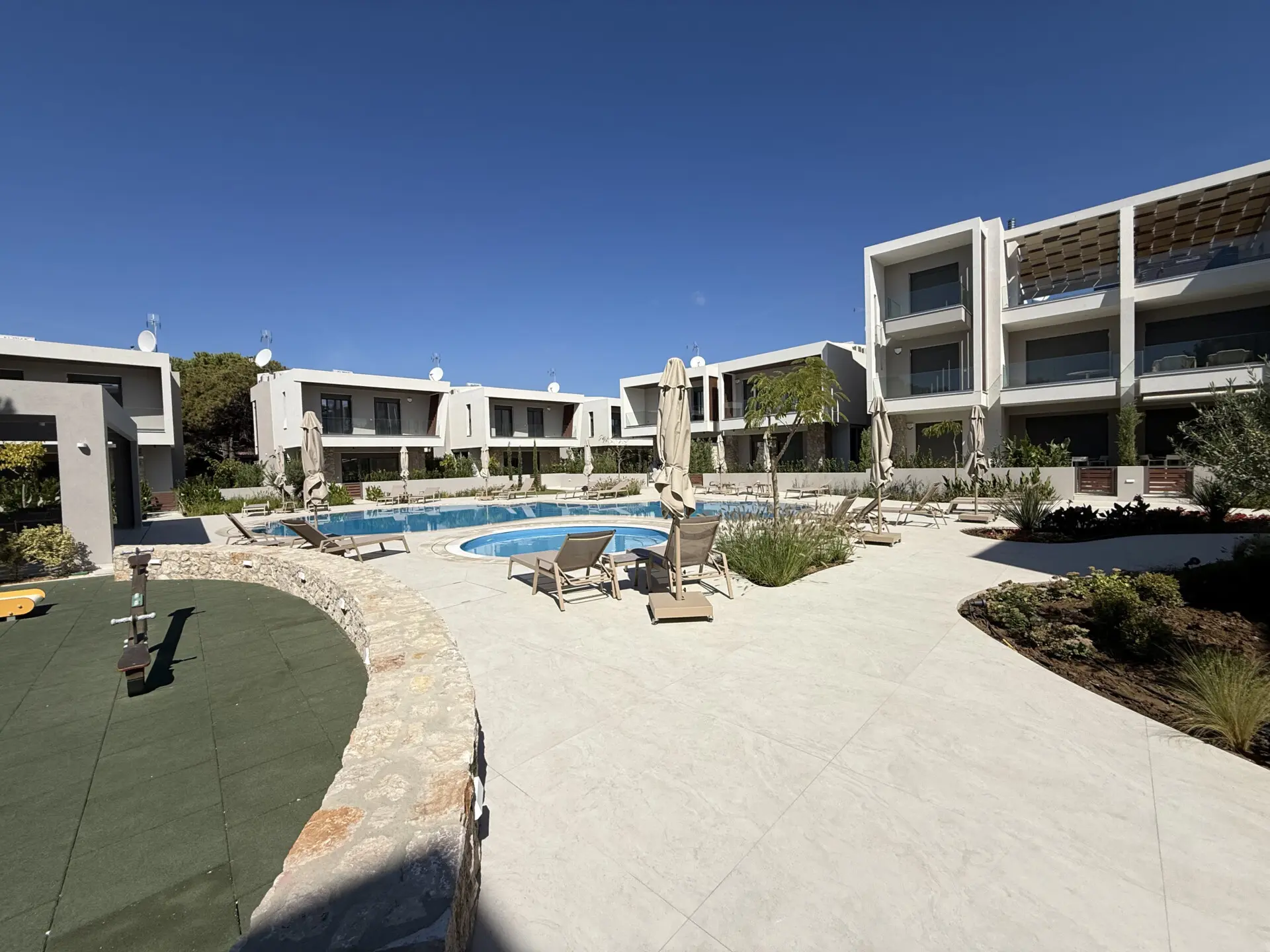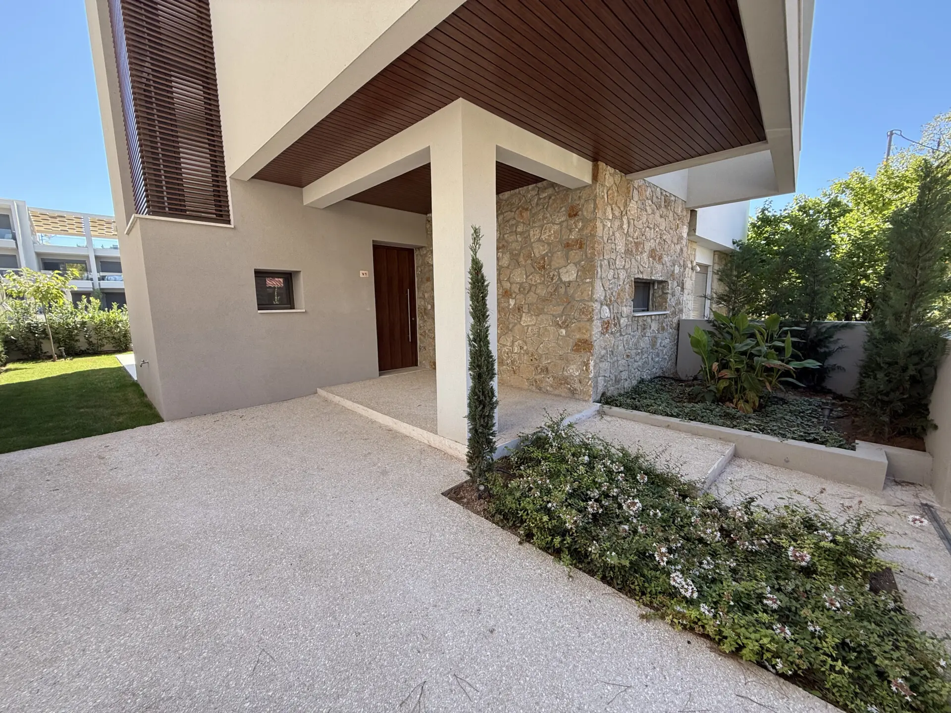 Kompleks kombinuje moderan dizajn sa prirodnim lepotama Halkidikija. Čiste linije, zemljana paleta boja i upotreba prirodnog kamena stvaraju osećaj harmonije sa okruženjem, pružajući stanovnicima jedinstveno i mirno utočište. Ako tražiš rezidenciju blizu mora, sa odličnim kvalitetom gradnje i modernim elementima, Kompleks je idealan izbor za tebe.