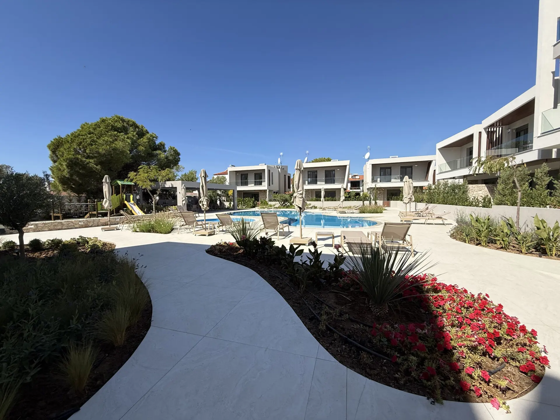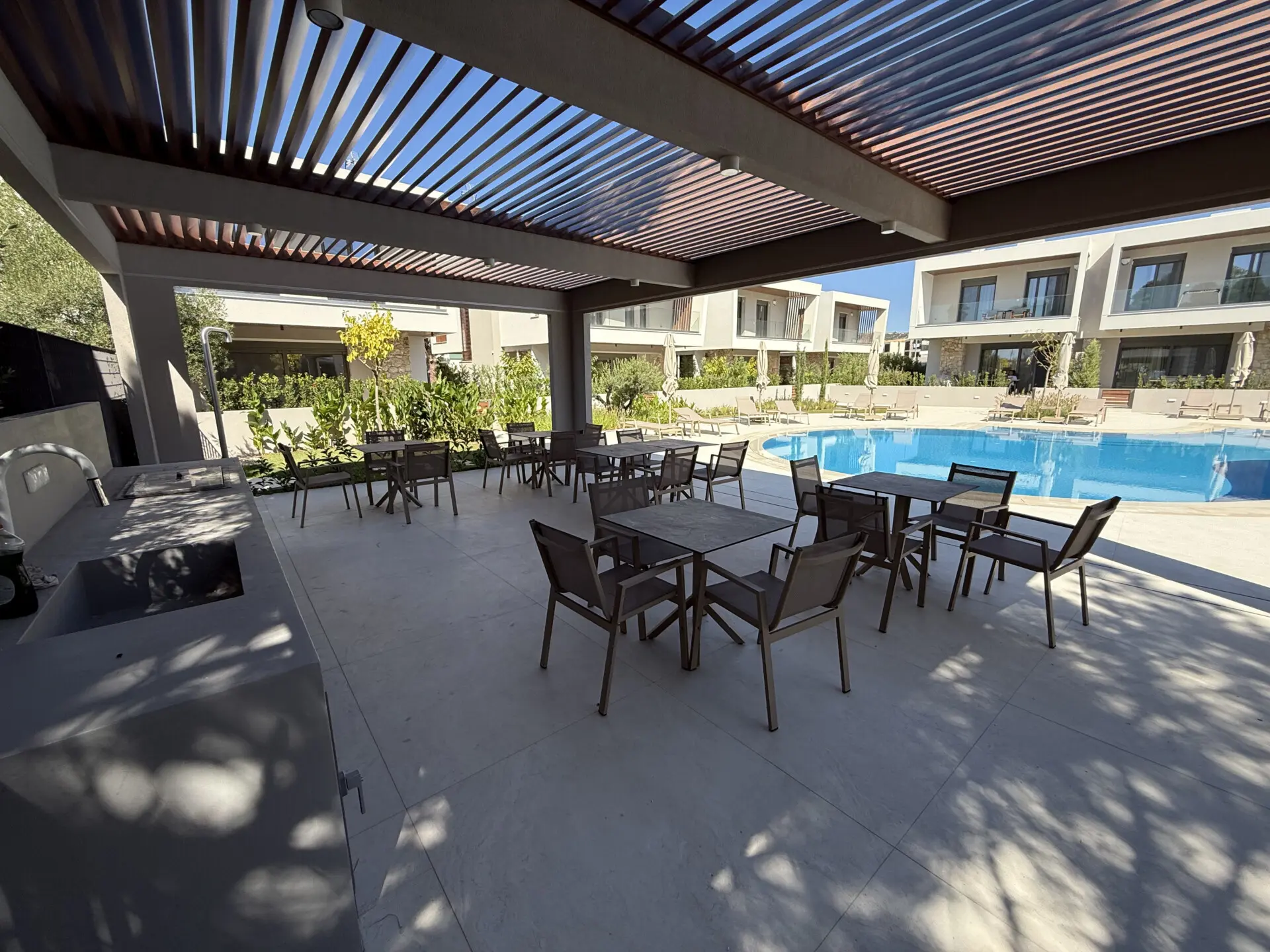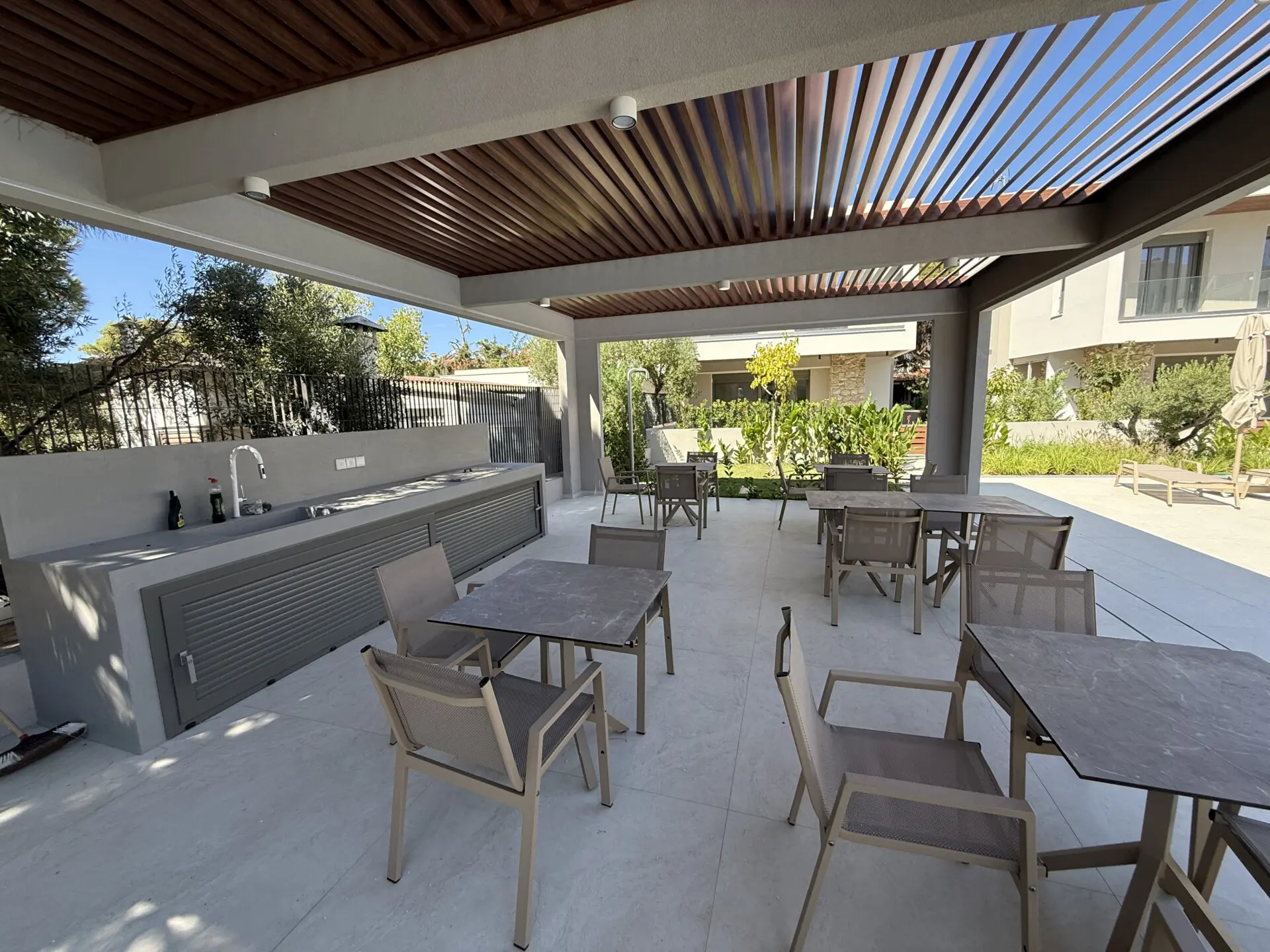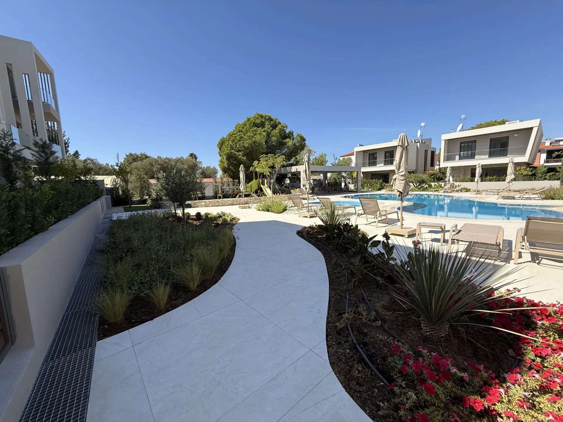 Kompleks kombinuje moderan dizajn sa prirodnim lepotama Halkidikija. Čiste linije, zemljana paleta boja i upotreba prirodnog kamena stvaraju osećaj harmonije sa okruženjem, pružajući stanovnicima jedinstveno i mirno utočište. Ako tražiš rezidenciju blizu mora, sa odličnim kvalitetom gradnje i modernim elementima, Kompleks je idealan izbor za tebe.