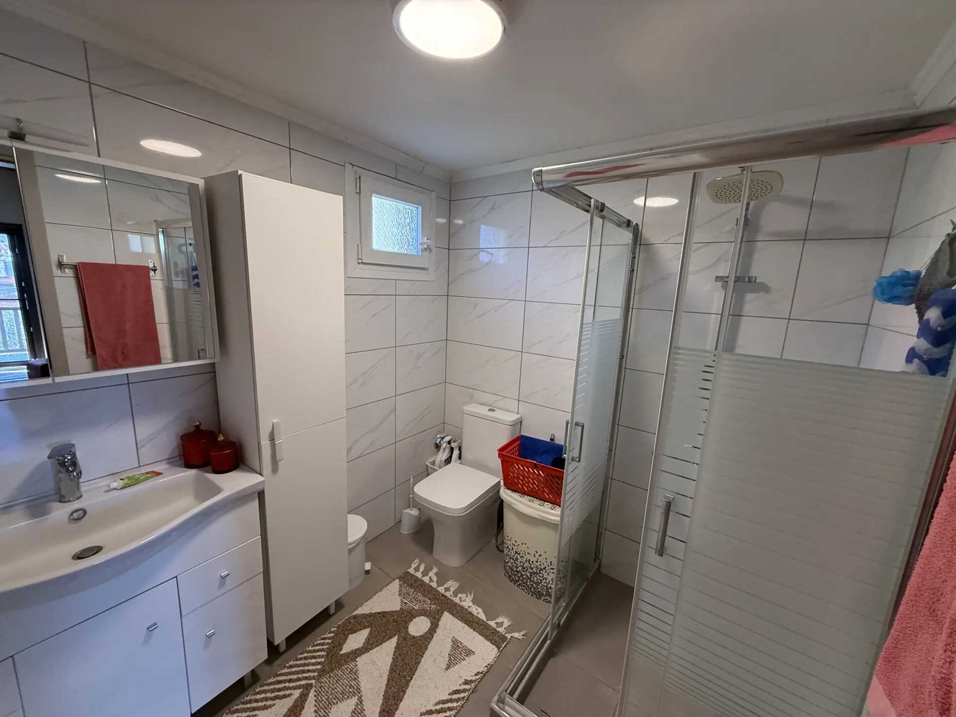 Zum Verkauf steht eine Wohnung mit einer Fläche von 85 qm in Nikiti auf der Halbinsel Sithonia, Region Chalkidiki. Die Wohnung befindet sich im 1. Obergeschoss und besteht aus zwei Schlafzimmern, einem Wohnzimmer mit offener Küche, einem Duschbad und einem Abstellraum. Die Immobilie wurde 2024 renoviert. Von den Fenstern aus bietet sich ein Blick auf die Stadt und das Meer. Sie ist mit Solarpaneelen zur Warmwasserbereitung, einem Kamin, einer Klimaanlage und einer Heizung ausgestattet.