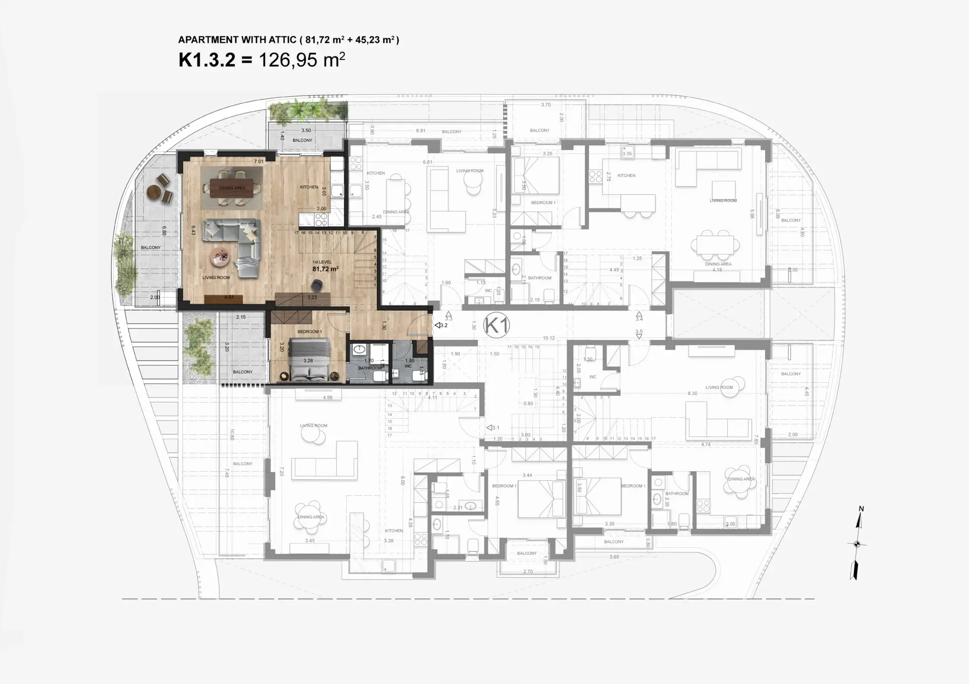 Na prodaju je moderan stan u novom premium stambenom kompleksu, smeštenom u jednom od najprestižnijih priobalnih delova Soluna, Kalamaria. Nekretnina se nalazi u mirnom i potpuno razvijenom stambenom području, na svega nekoliko minuta od mora, sa lakim pristupom centru grada i metro stanici udaljenoj 250 m, kao i u blizini kompletne infrastrukture, što je čini idealnom za stanovanje ili investiciju. Kompleks se sastoji od dve zgrade do četiri sprata i ukupno 33 stana, sa savremenom arhitekturom koja naglašava svetlost, prostor i privatnost, dok ograđeno i uređeno dvorište uključuje zelenu unutrašnju zonu, staze za šetnju, prostore za odmor, privatni park, dečje igralište i roštilj zonu. Stanari imaju ekskluzivan pristup potpuno opremljenoj zatvorenoj teretani i prostoru za odmor sa dnevnim boravkom i kuhinjom. Stan ima funkcionalan raspored sa prostranim dnevnim boravkom i otvorenom kuhinjom, kupatilom, WC-om sa tušem, zasebnom vešernicom i balkonom, dok veliki prozori obezbeđuju obilje prirodne svetlosti. Korišćeni su savremeni materijali visokog kvaliteta, smart home sistem i podno grejanje na gas, uz energetsku klasu A+. Svi stanovi imaju privatnu ostavu, a stanovi sa dve ili više spavaćih soba imaju i privatno parking mesto, uz dostupne podzemne i nadzemne parkinge. Kalamaria je jedna od najtraženijih zona Soluna, u blizini mora, marina, parkova, kafića i restorana, sa brzom vezom sa centrom grada putem metroa, a završetak projekta planiran je za prvu polovinu 2028. godine, što ovu nekretninu čini odličnim izborom za život ili sigurnu investiciju.