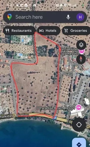 Izuzetna, ravna i izgrađena parcela površine 74.557,40 m2. se nudi na prodaju u oblasti Magoula u Eretriji.