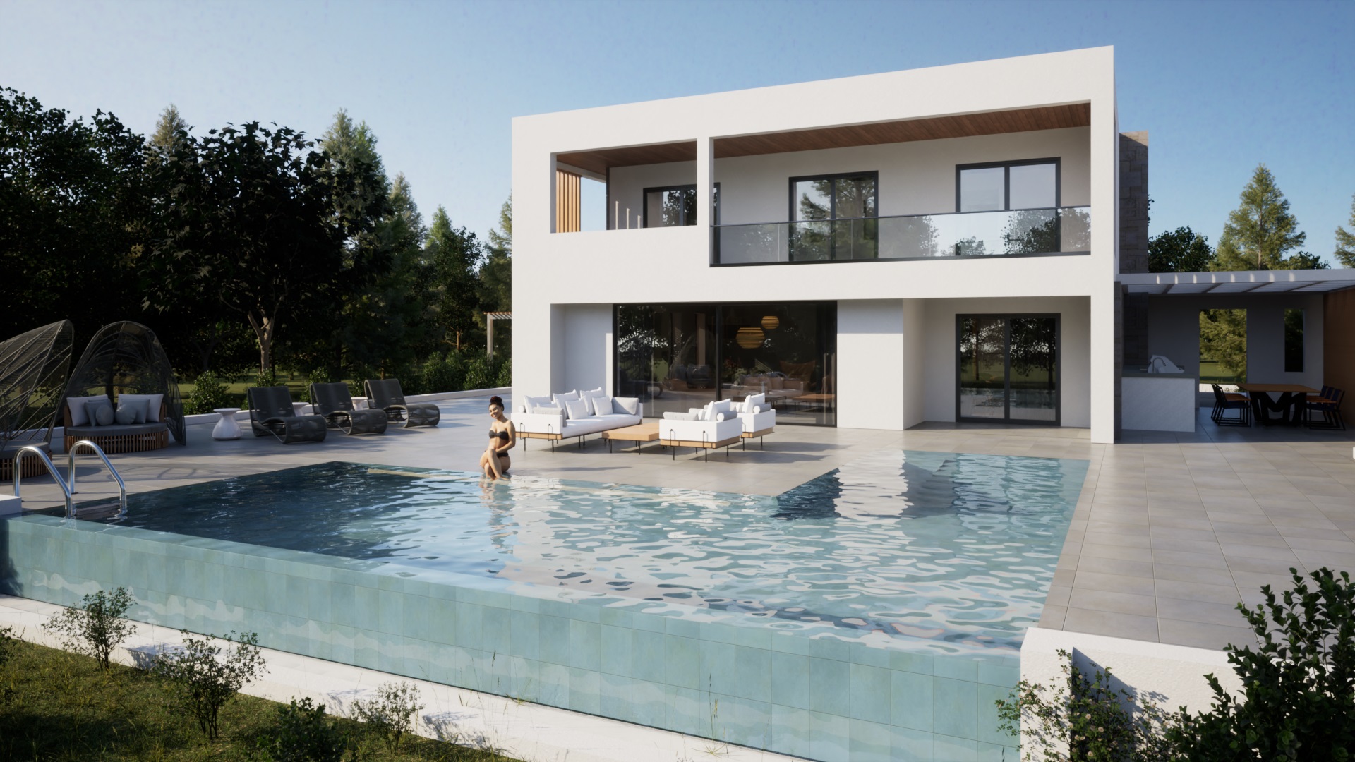 Prodaja: autonomna, nezavisna luksuzna vila na 3.785 m2. zemljište u Saniju, Halkidiki, spremno za trenutnu isporuku. Vila ima ukupnu površinu od 385 m2. i razvija se na tri nivoa. Podrum je 100 m2, prizemlje 90 m2, prvi sprat 90 m2, a pomoćni prostori ukupno 105 m2.