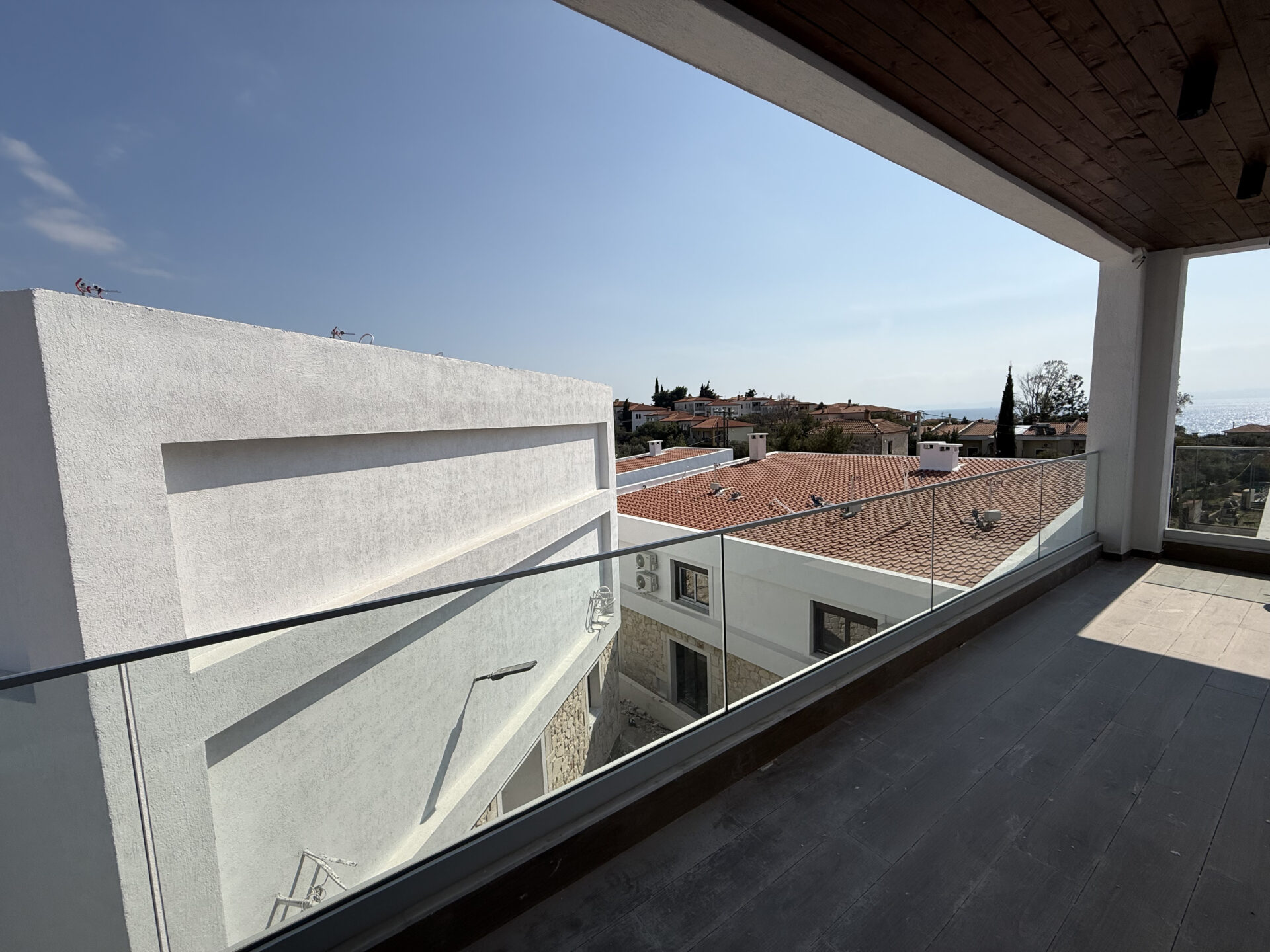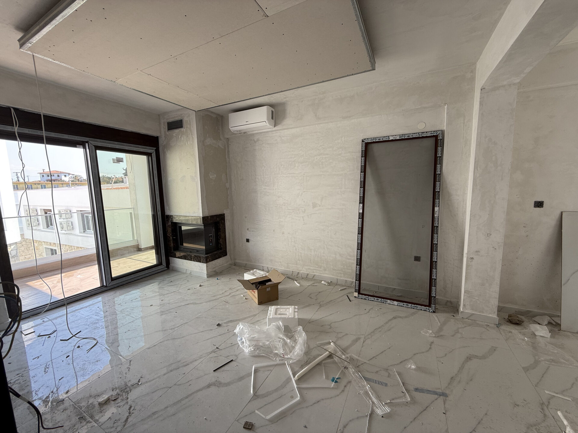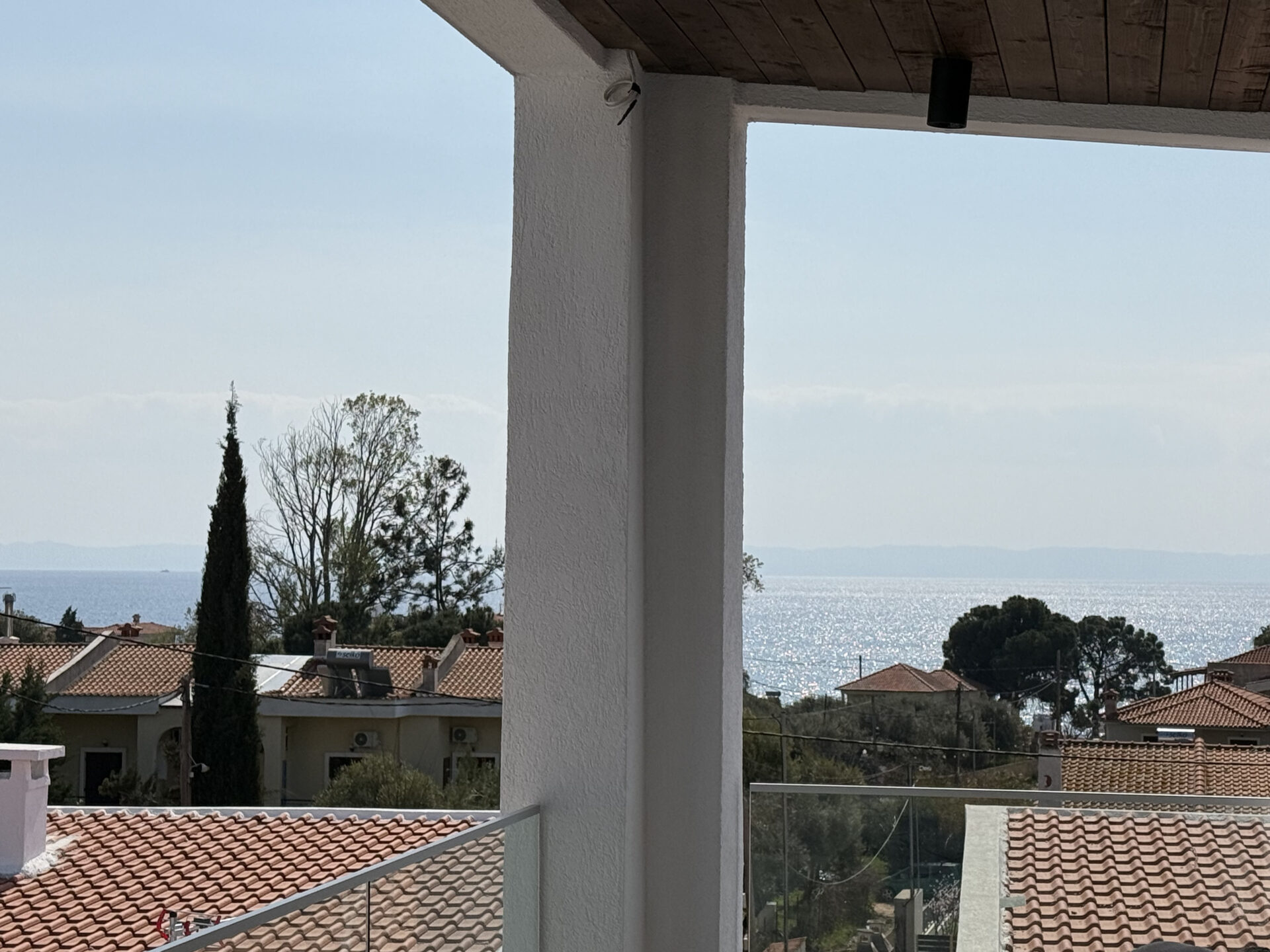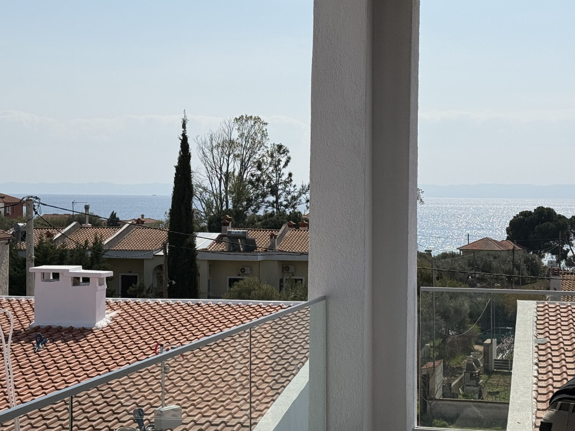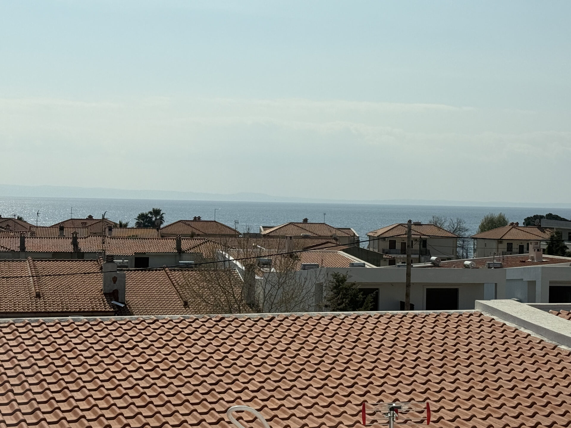Дом площадью 95 кв. м. дуплексная квартира продаётся в Никити, Ситония: на втором этаже расположена гостиная, кухня, одна спальня и ванная с душем; На третьем этаже находятся две спальни и ванная с душем. Каждая комната оснащена кондиционером, солнечными панелями для нагрева горячей воды, камином, а балкон открывает вид на море.