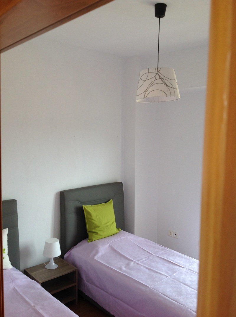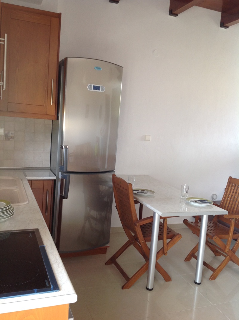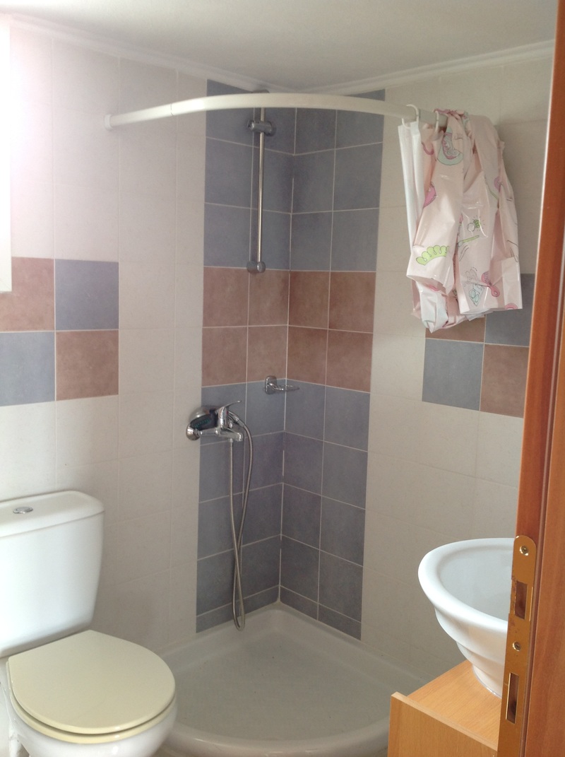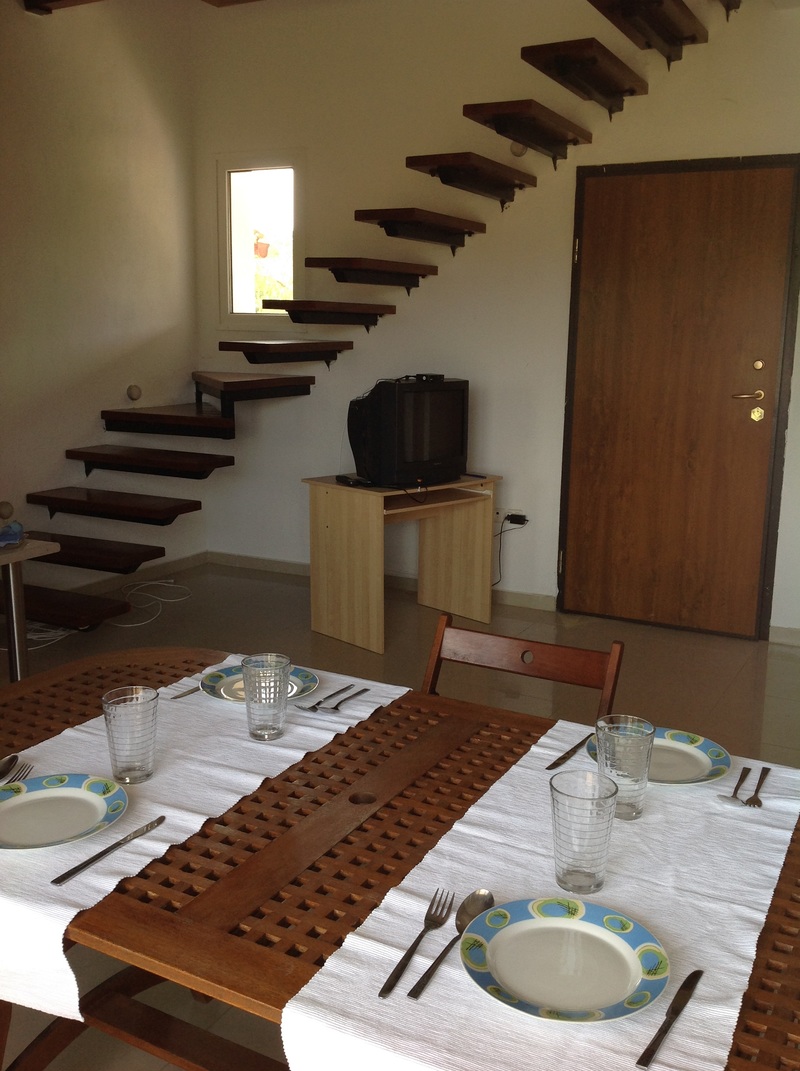 На первом этаже расположена гостиная с кухней и одним туалетом, а на втором этаже две спальни и одна ванная с душем.
