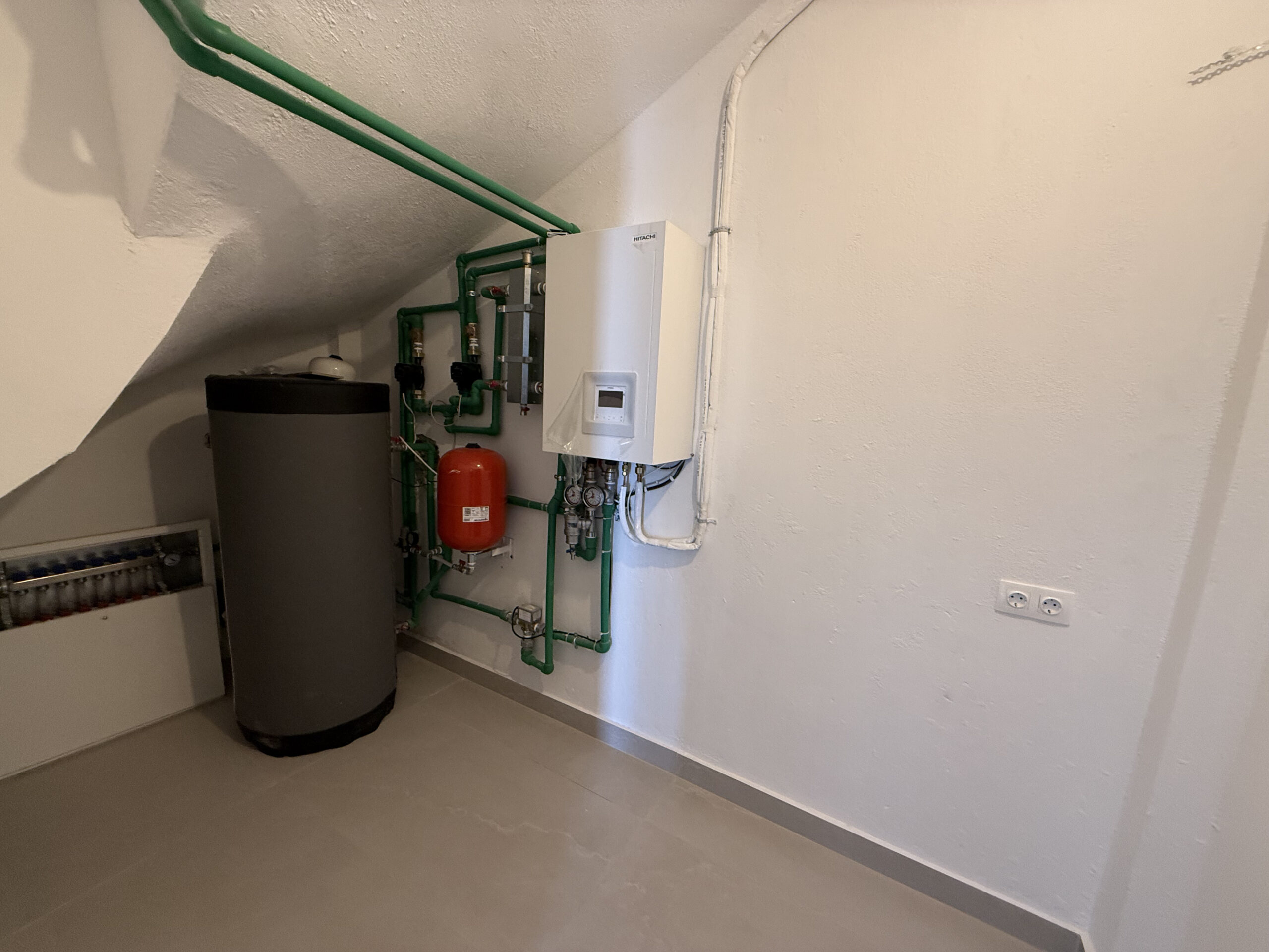 На участке обустроен частный бассейн, зона для барбекю, ухоженный сад и две парковочные площадки. Инженерное оснащение дома включает тепловой насос, систему теплого пола и кондиционеры, установленные в каждой комнате, что делает проживание комфортным в любое время года. Строительство выполнено с использованием качественных современных материалов, а сам дом оформлен в актуальном архитектурном стиле.